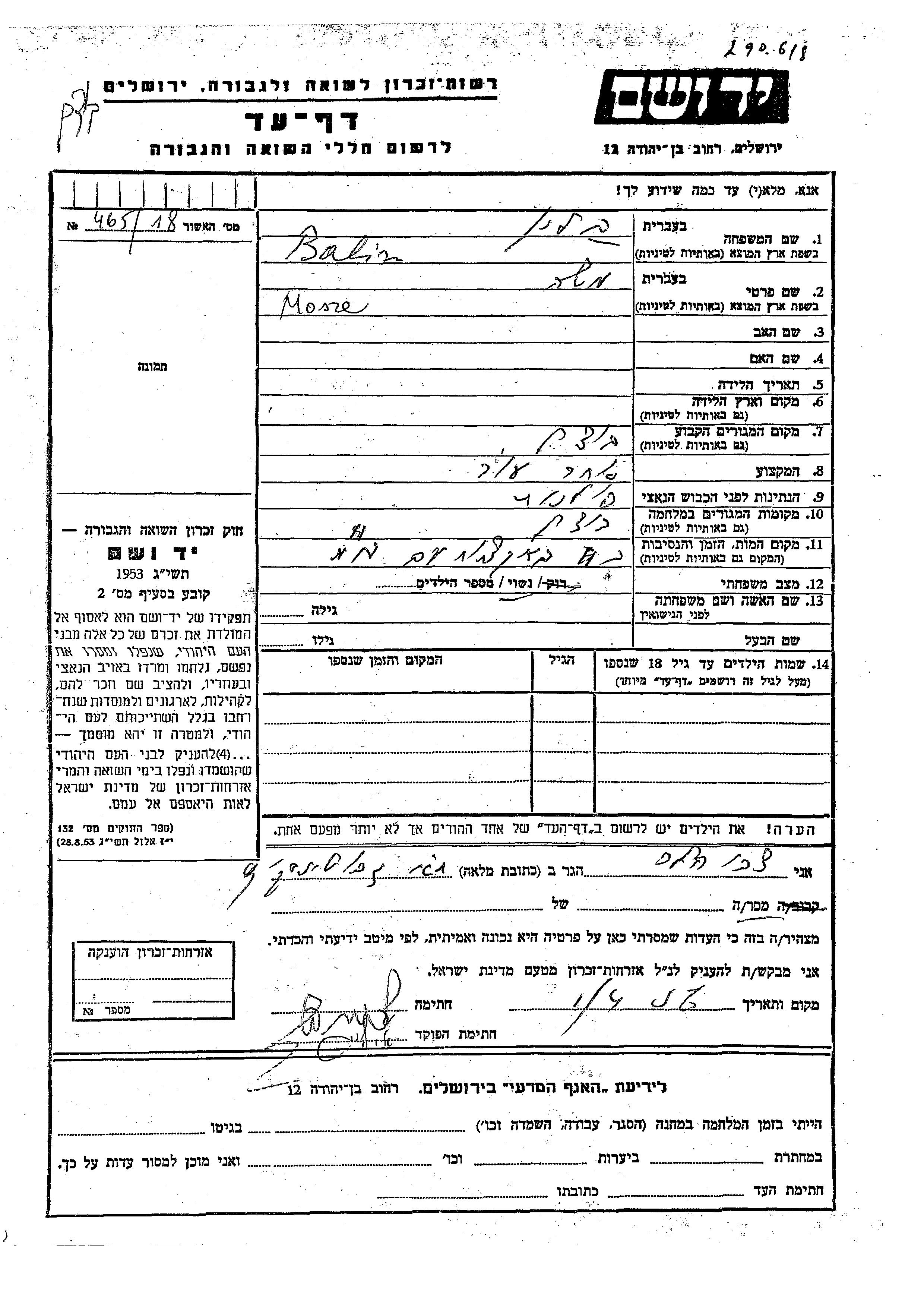 Yad Vashem - Pages of Testimony Names Memorial Collection