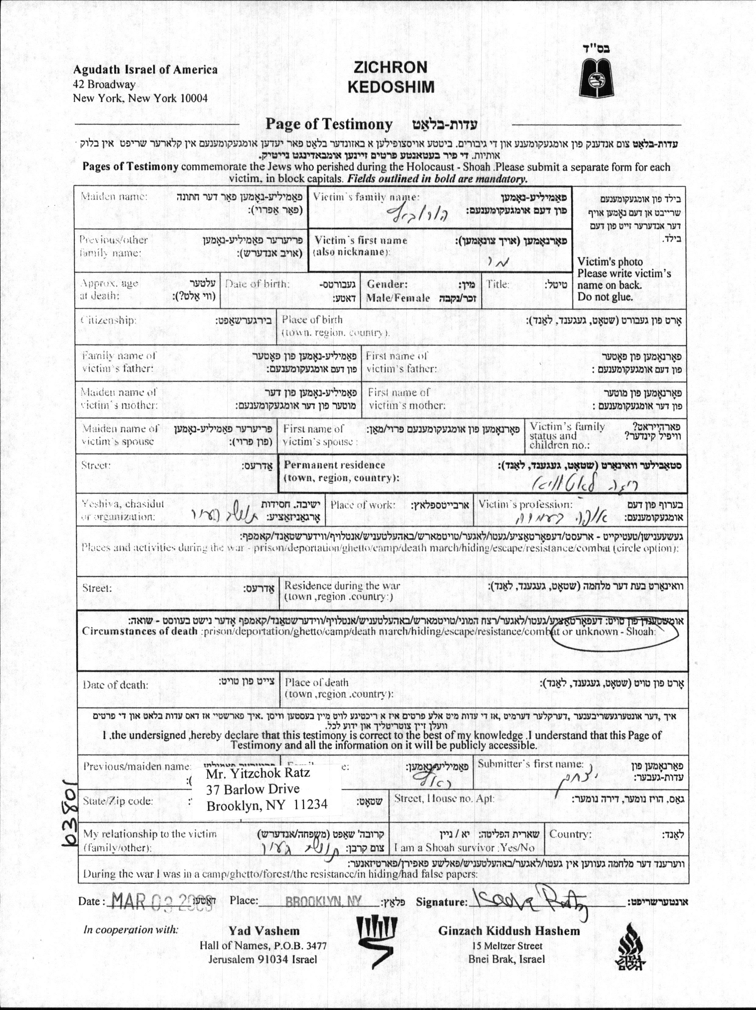 Yad Vashem - Pages of Testimony Names Memorial Collection