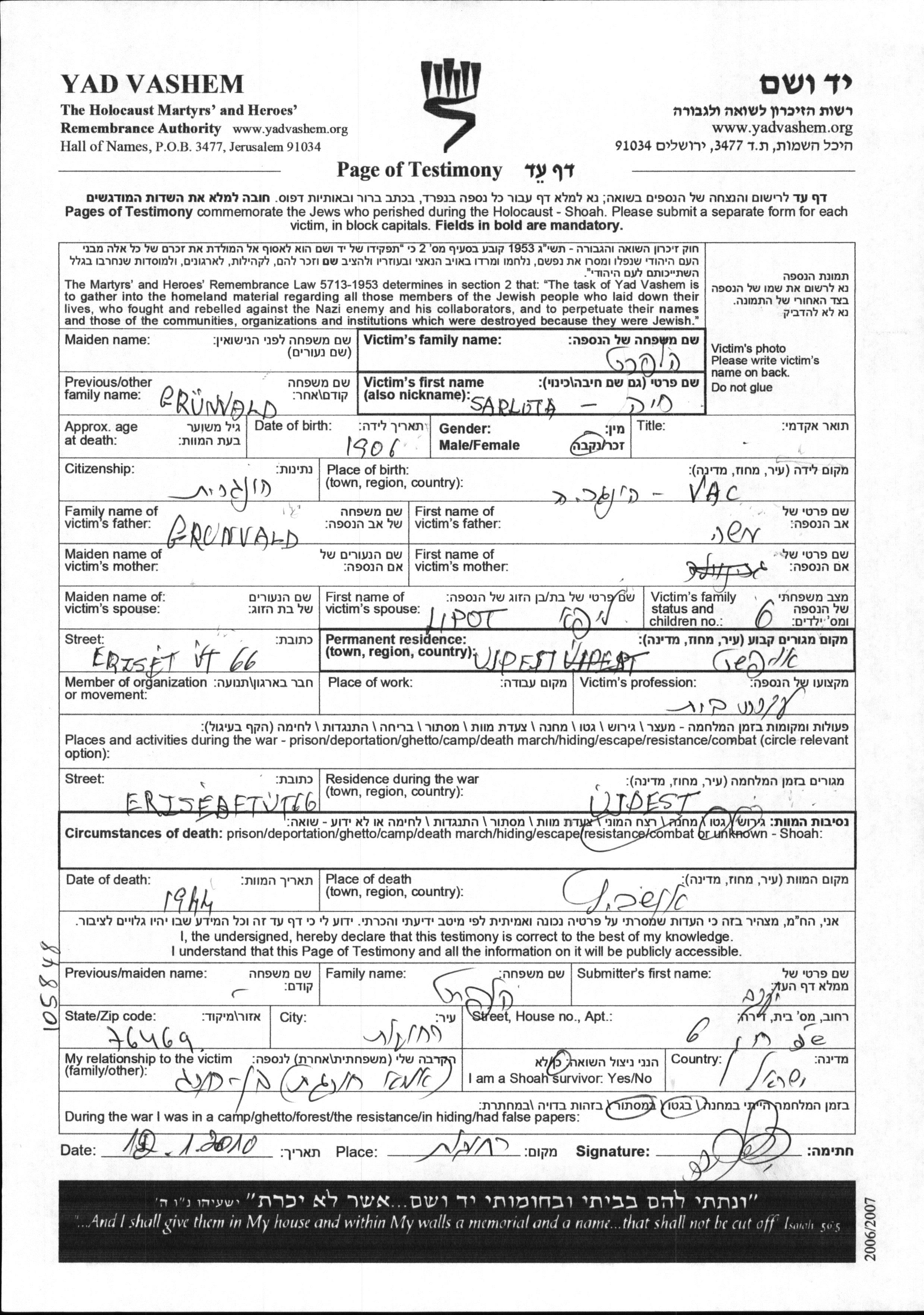 Yad Vashem - Pages of Testimony Names Memorial Collection