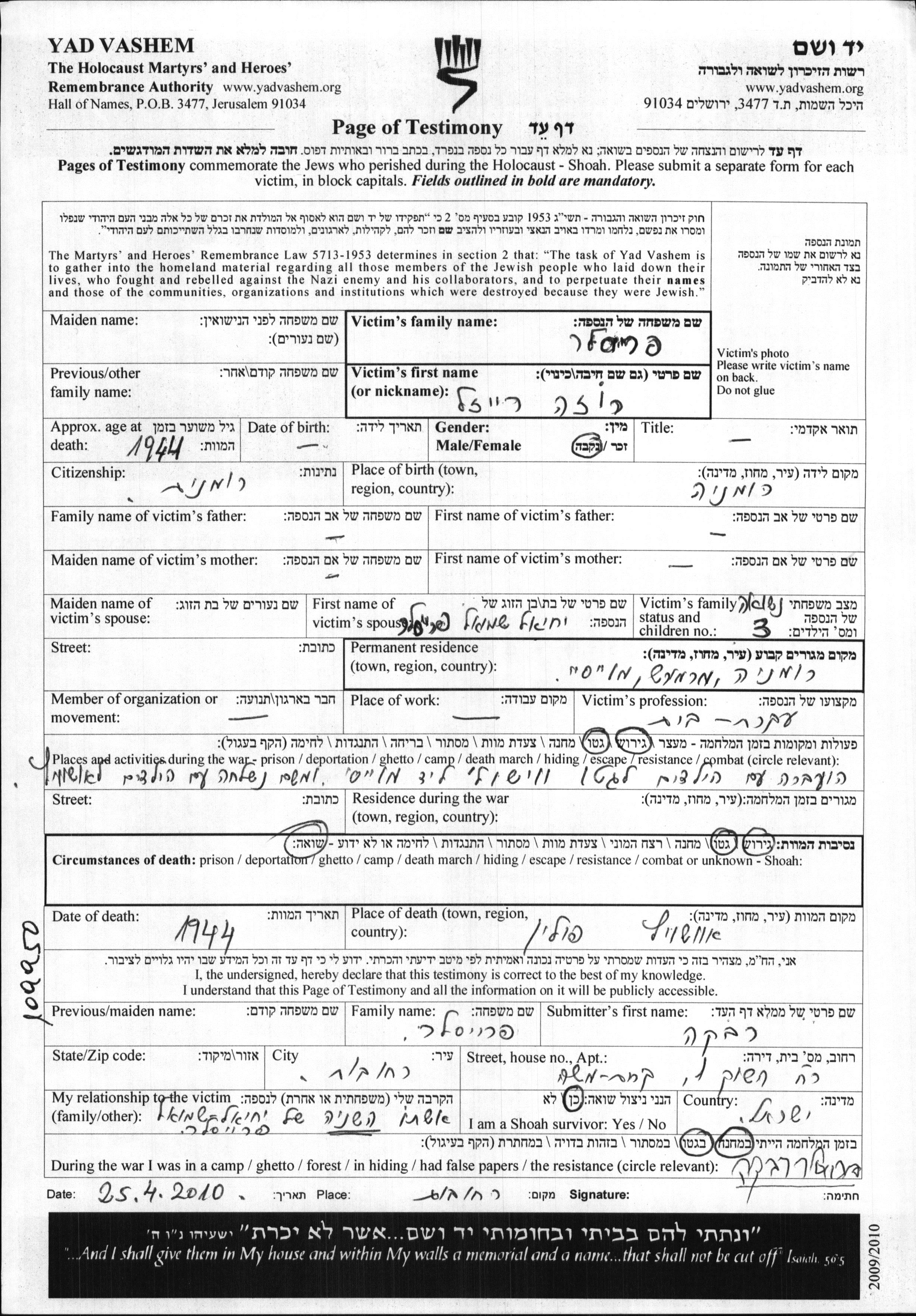 Yad Vashem - Pages of Testimony Names Memorial Collection