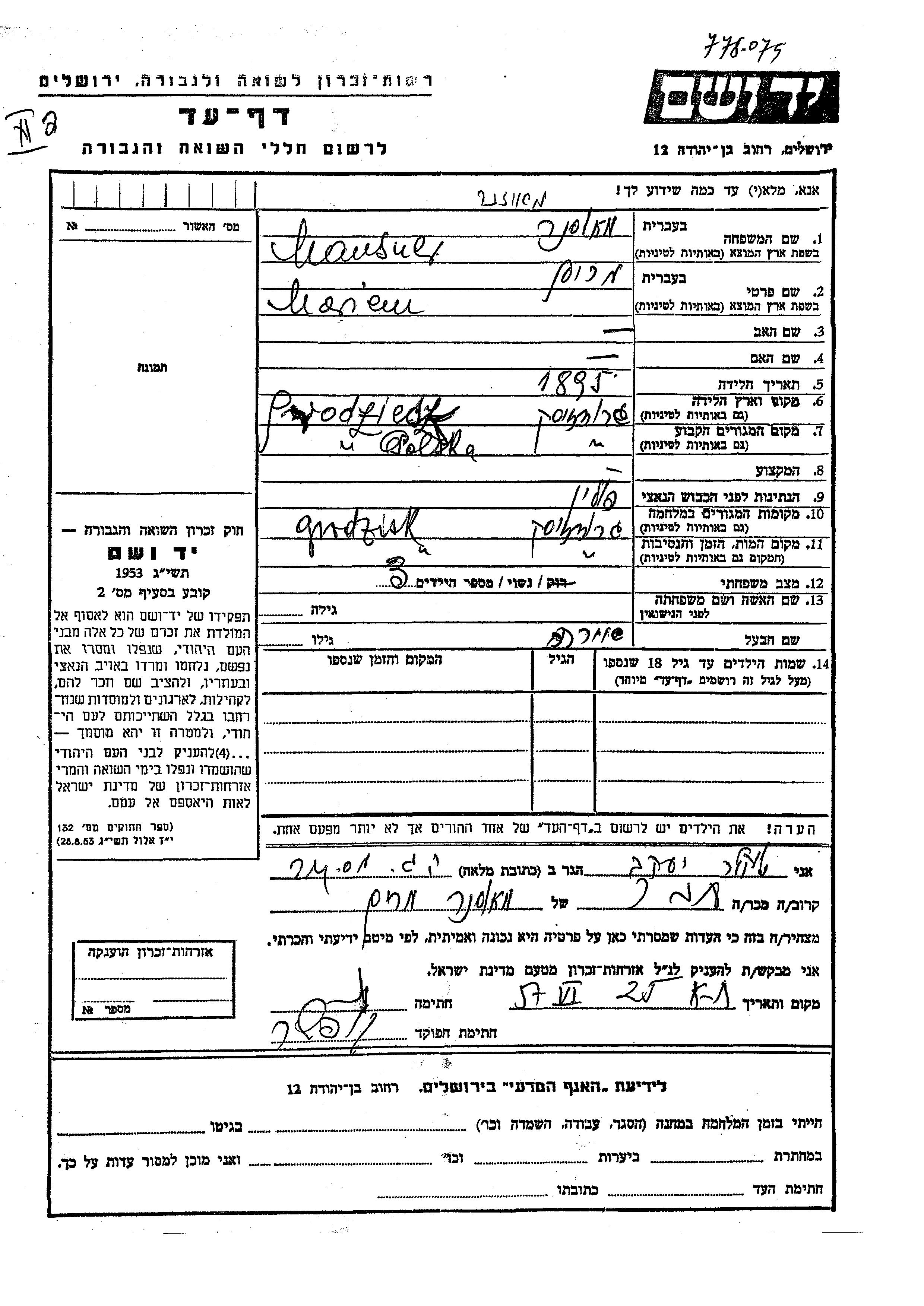 Yad Vashem - Pages of Testimony Names Memorial Collection