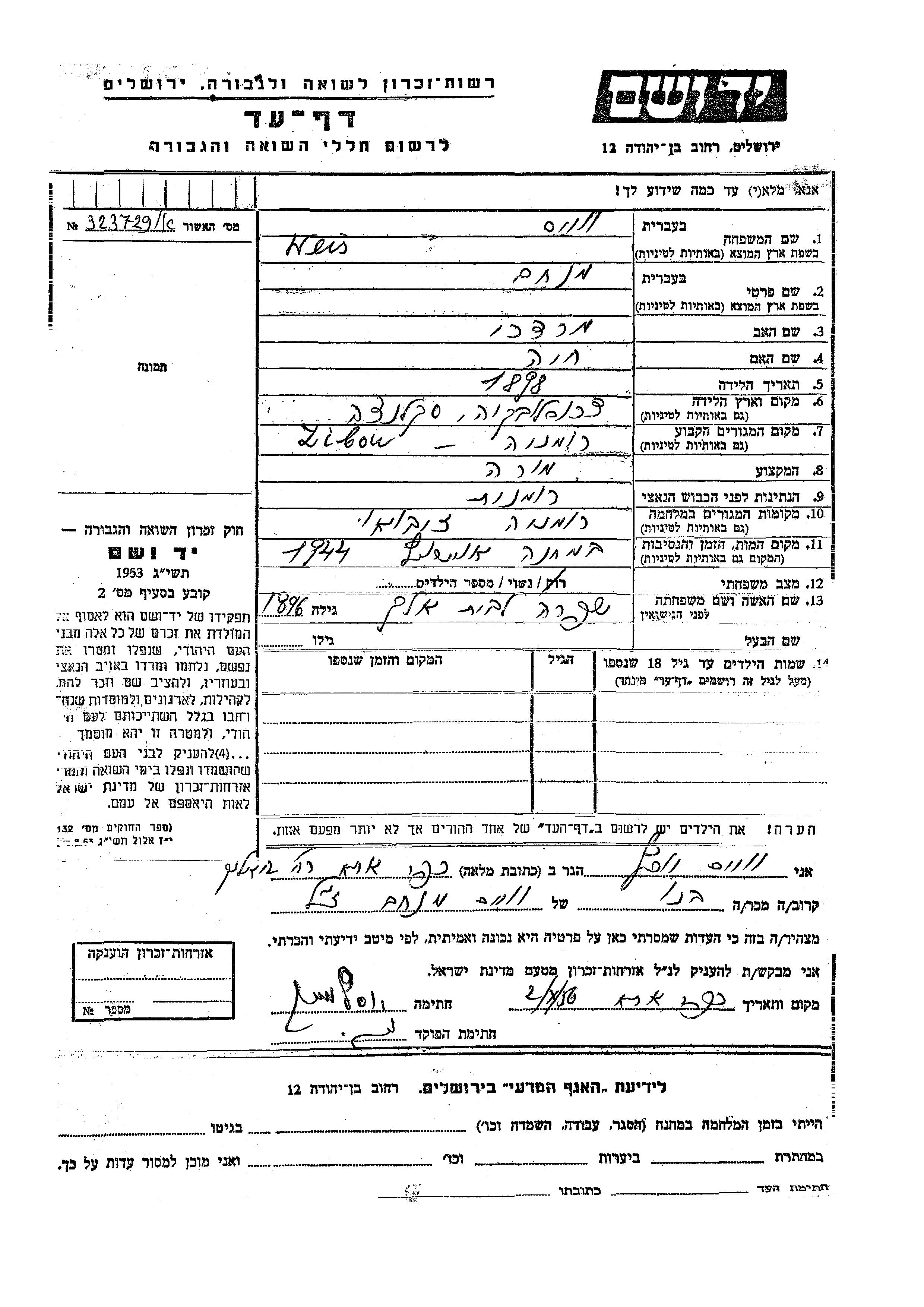 Yad Vashem - Pages of Testimony Names Memorial Collection