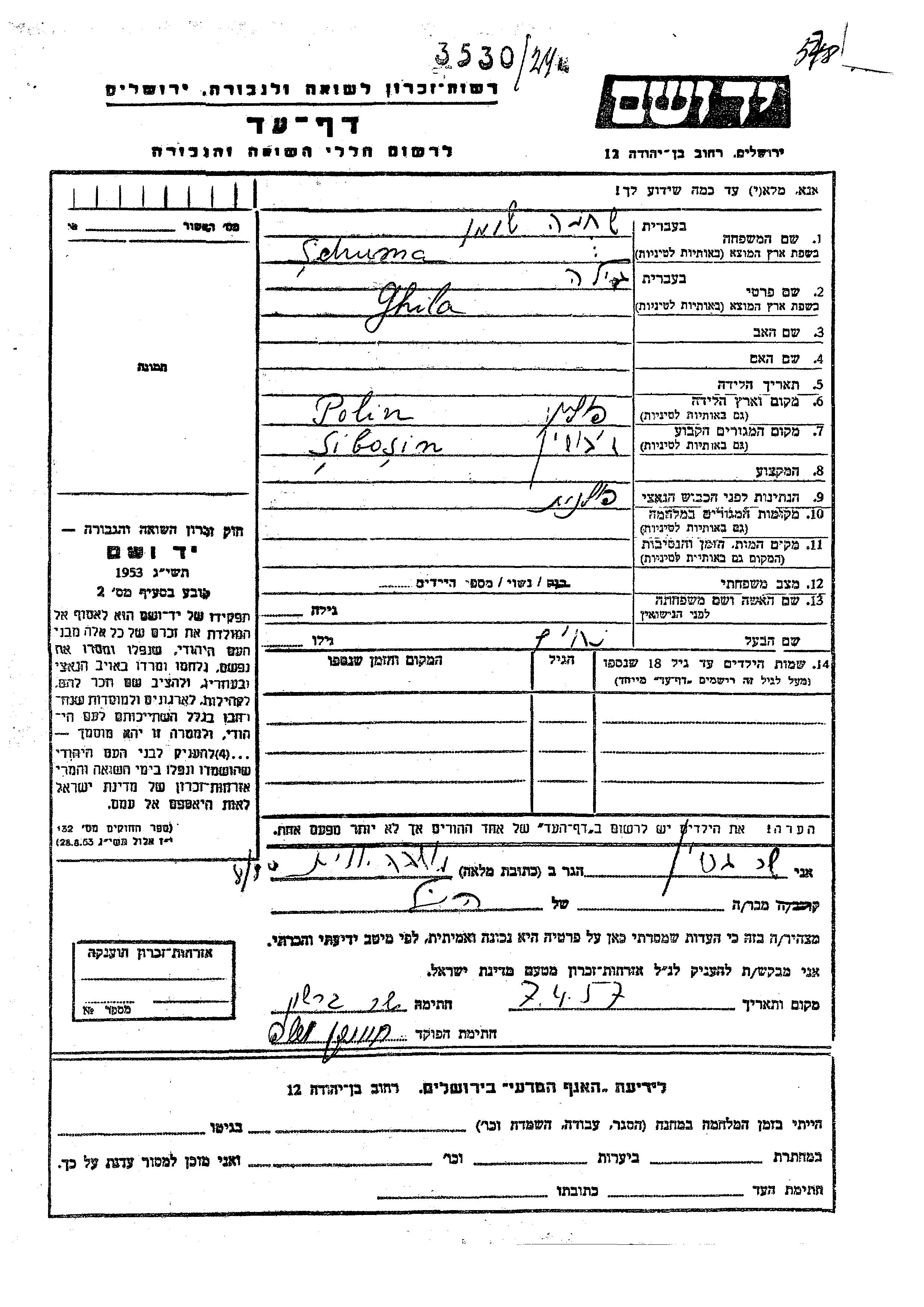 Schuman Ghila Sibosin, Pologne Feuille de témoignage