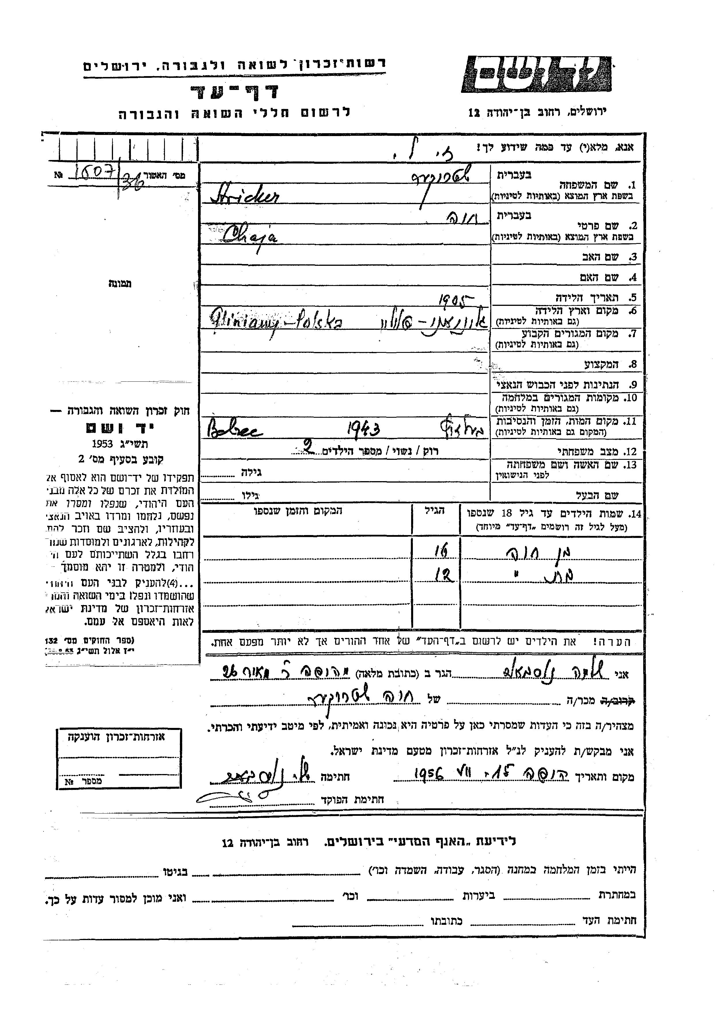 Stricker Chaja 1905 endroit inconnu, Feuille de témoignage