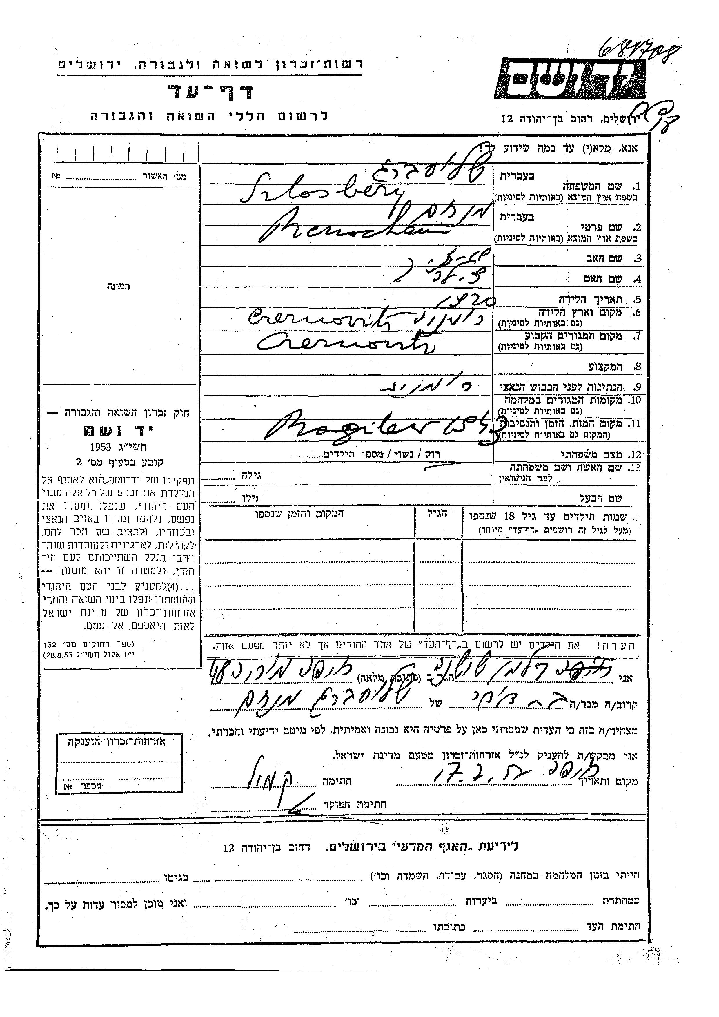 Recherche par lieu de résidence permanente avant la Shoah, ville, village, département, région ou pays.