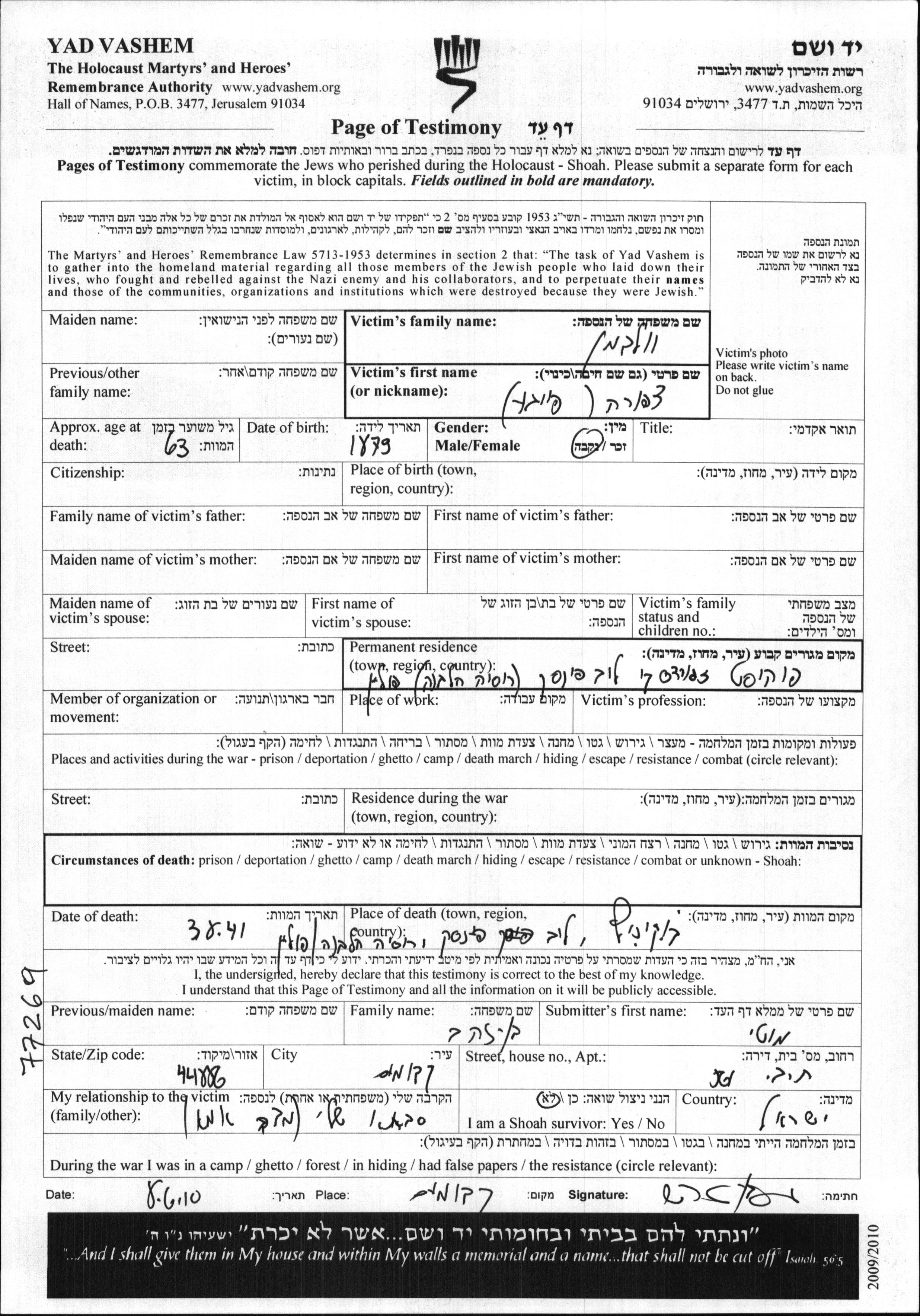 Yad Vashem - Pages of Testimony Names Memorial Collection