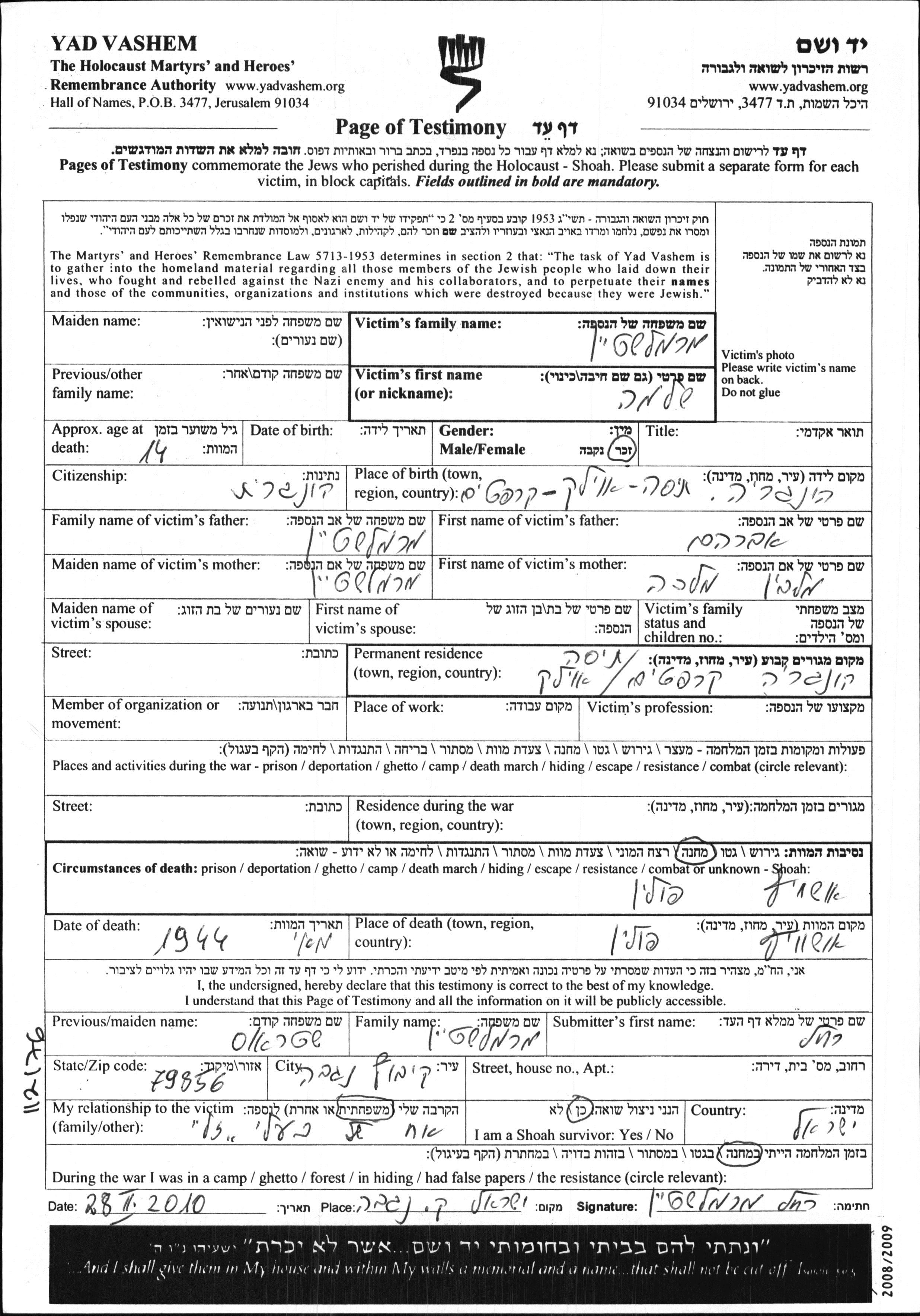 Yad Vashem - Pages of Testimony Names Memorial Collection