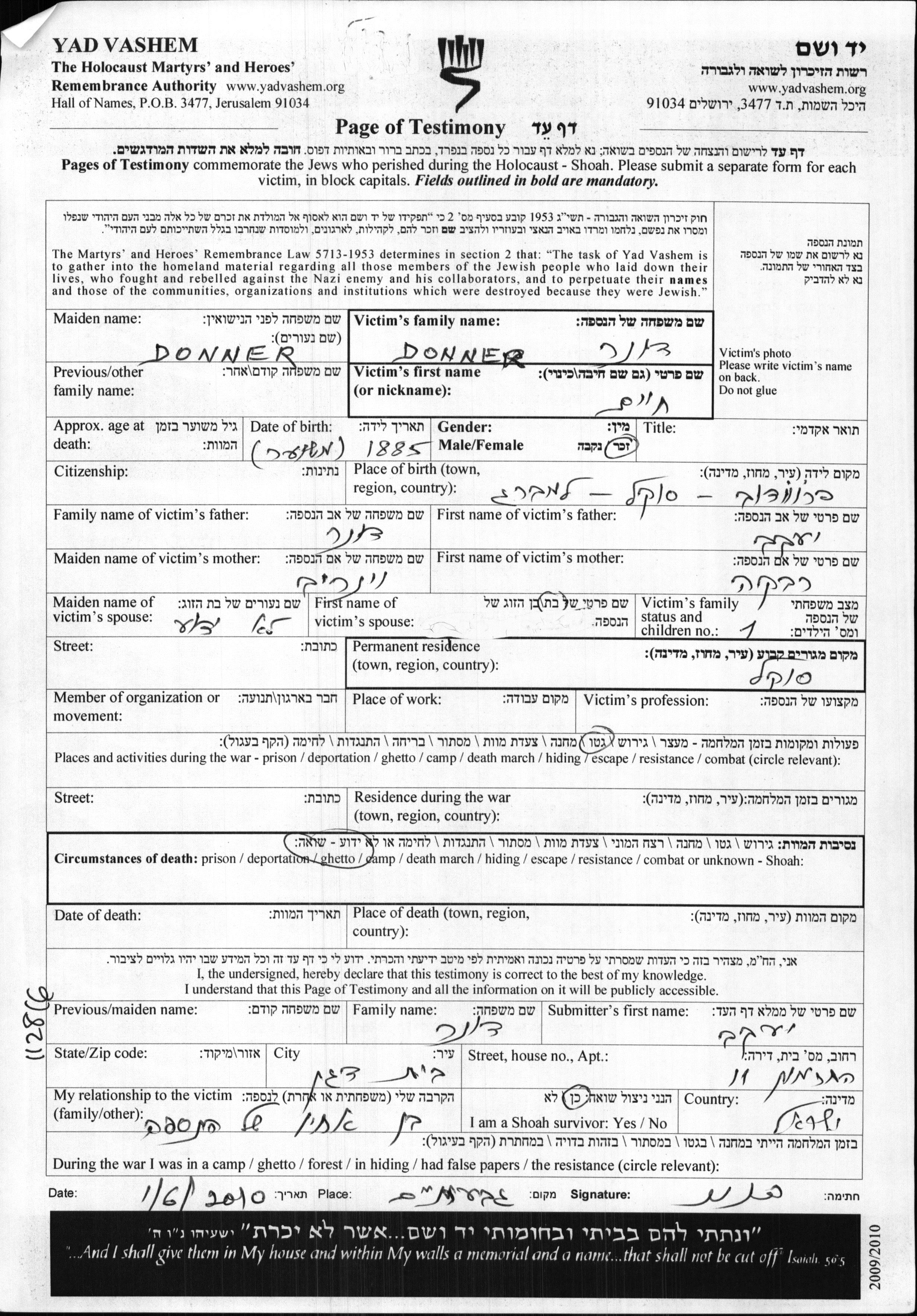 Yad Vashem - Pages of Testimony Names Memorial Collection