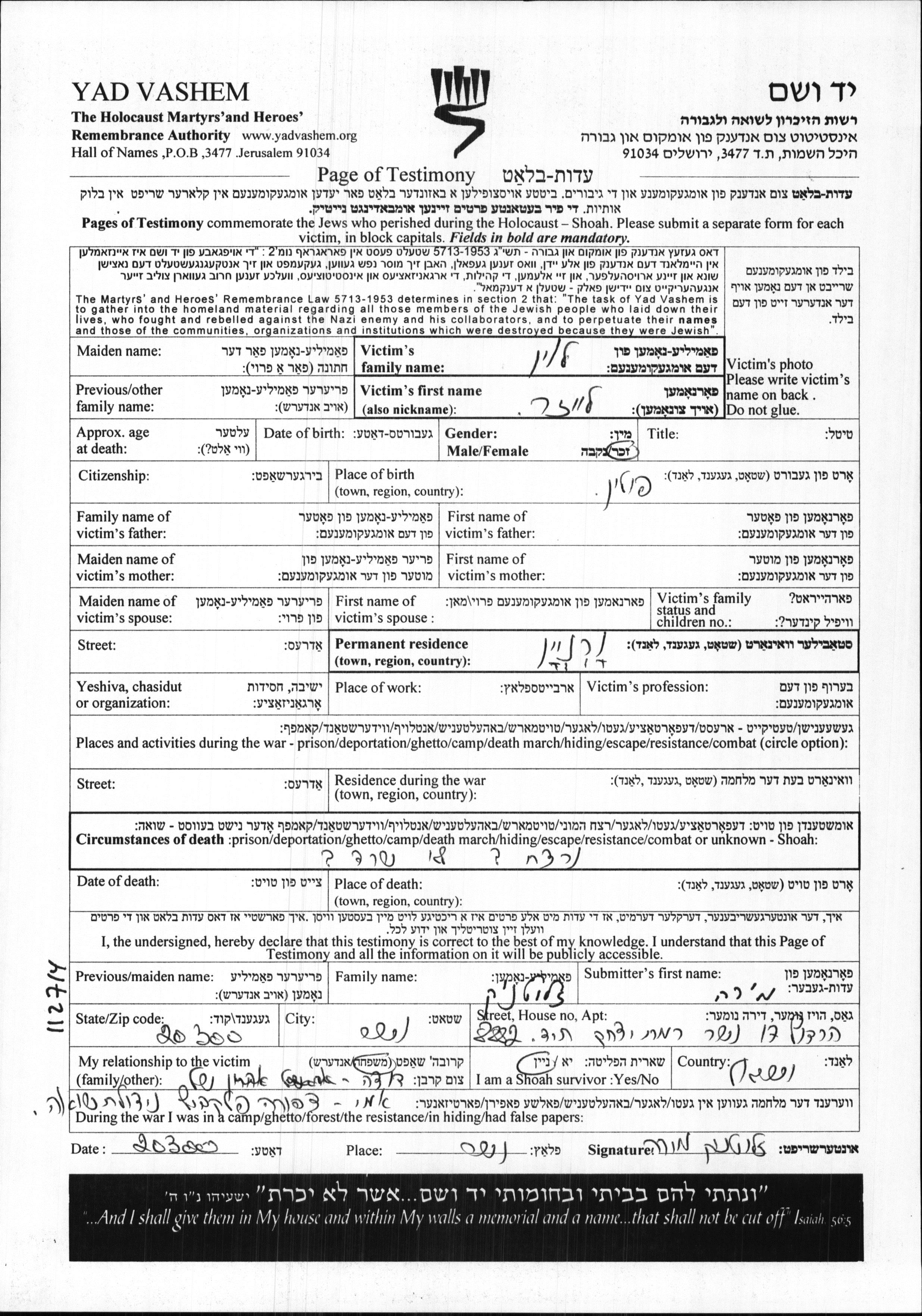 Yad Vashem - Pages of Testimony Names Memorial Collection