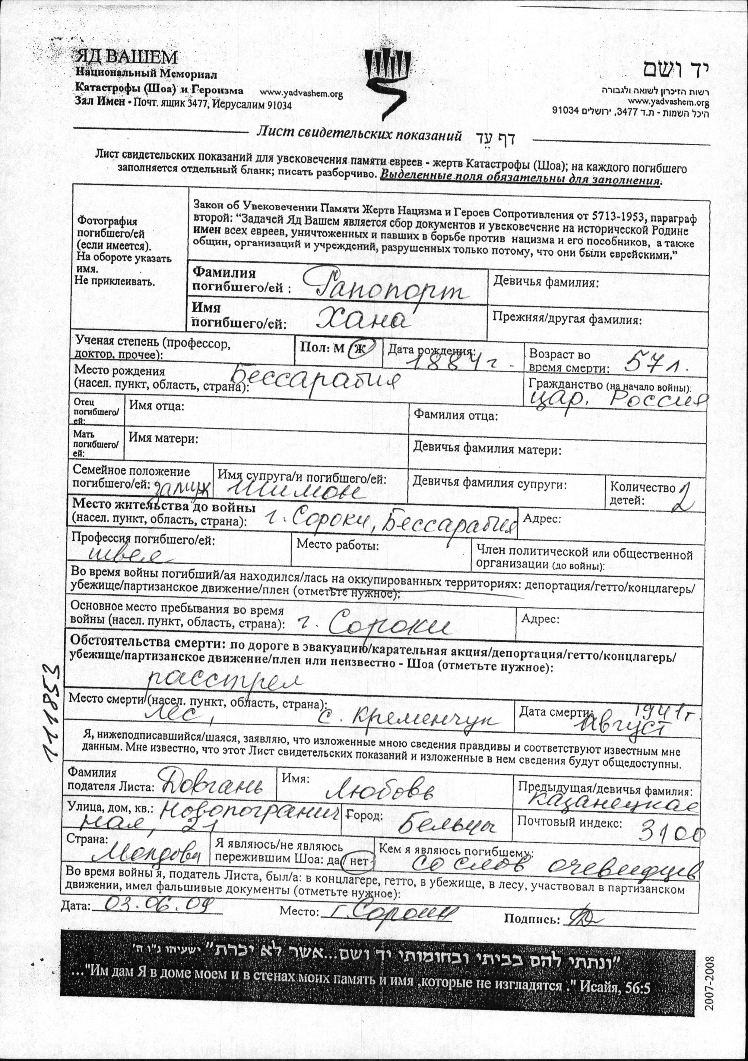 Au cours de la Shoah, les Juifs ont été assassinés de diverses façons : gazage, exécution par balle, immolation, noyade, enterrés vivants, épuisement par les travaux forcés, affamement, maladies et épidémies, privation de soins médicaux et de mesures de salubrité, etc. Certains Juifs ont mis fin à leur vie pour échapper à l'arrestation, aux persécutions ou aux souffrances permanentes et sans aucun espoir.