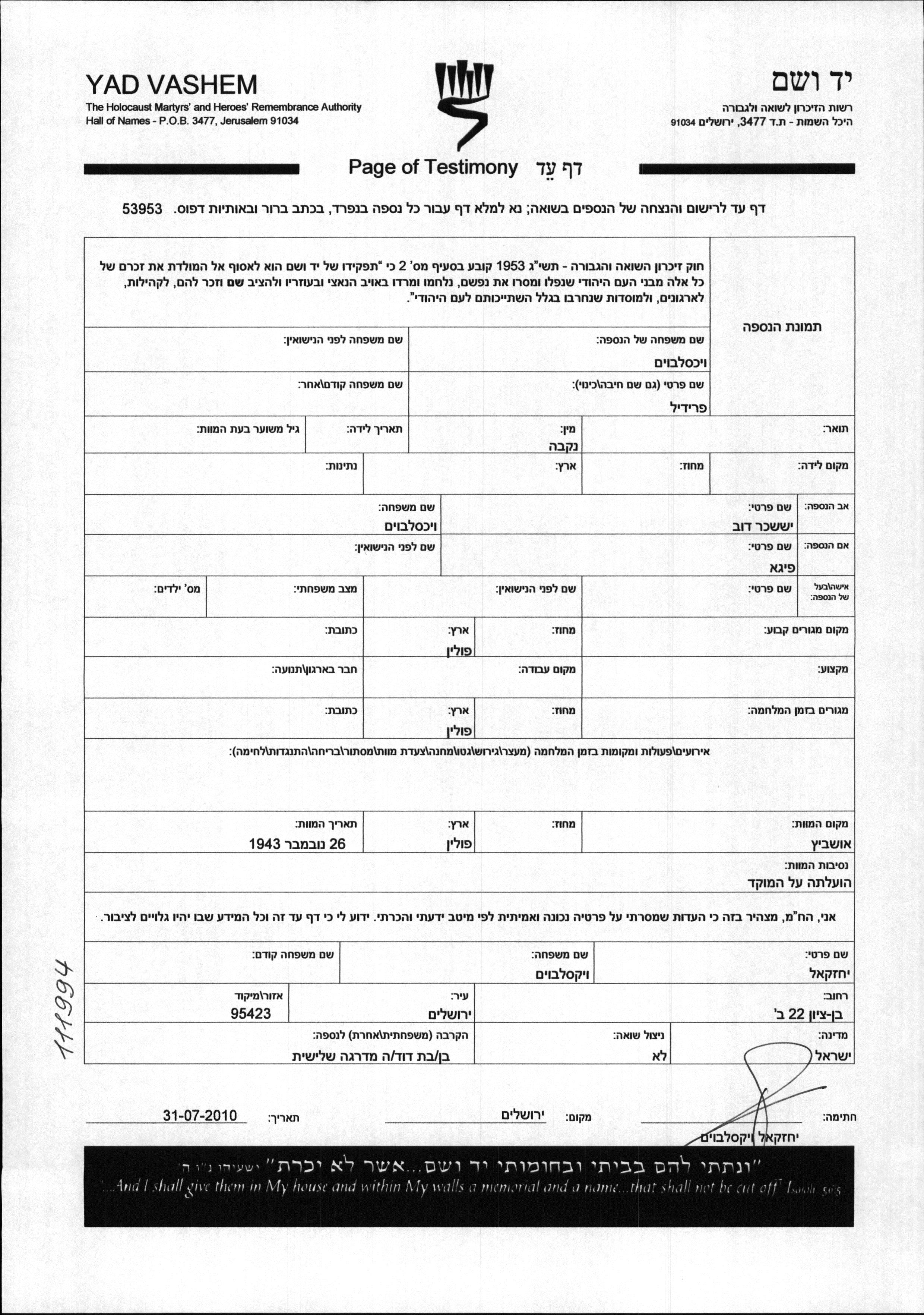 Yad Vashem - Pages of Testimony Names Memorial Collection
