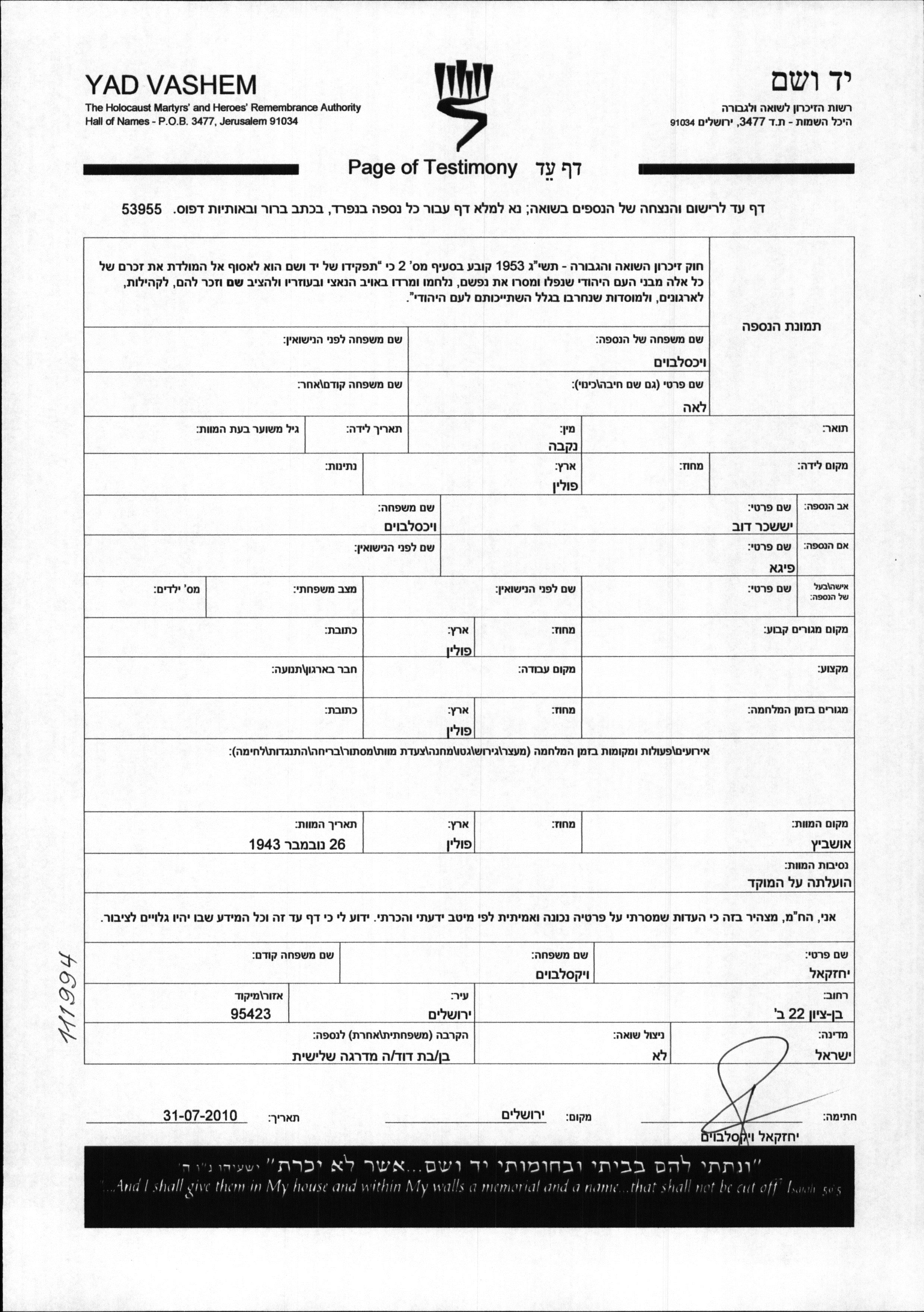 Yad Vashem - Pages of Testimony Names Memorial Collection