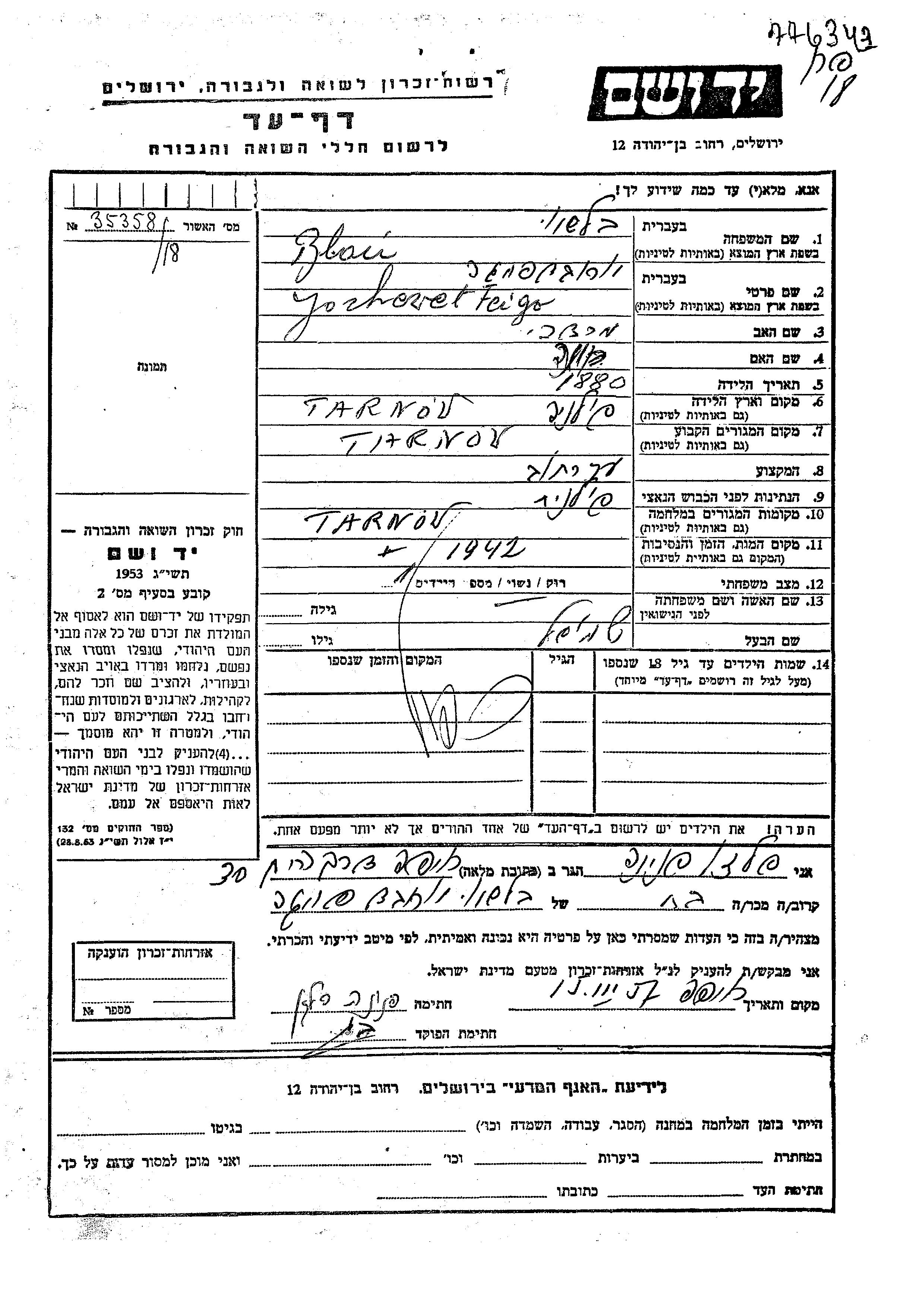 Yad Vashem - Pages of Testimony Names Memorial Collection