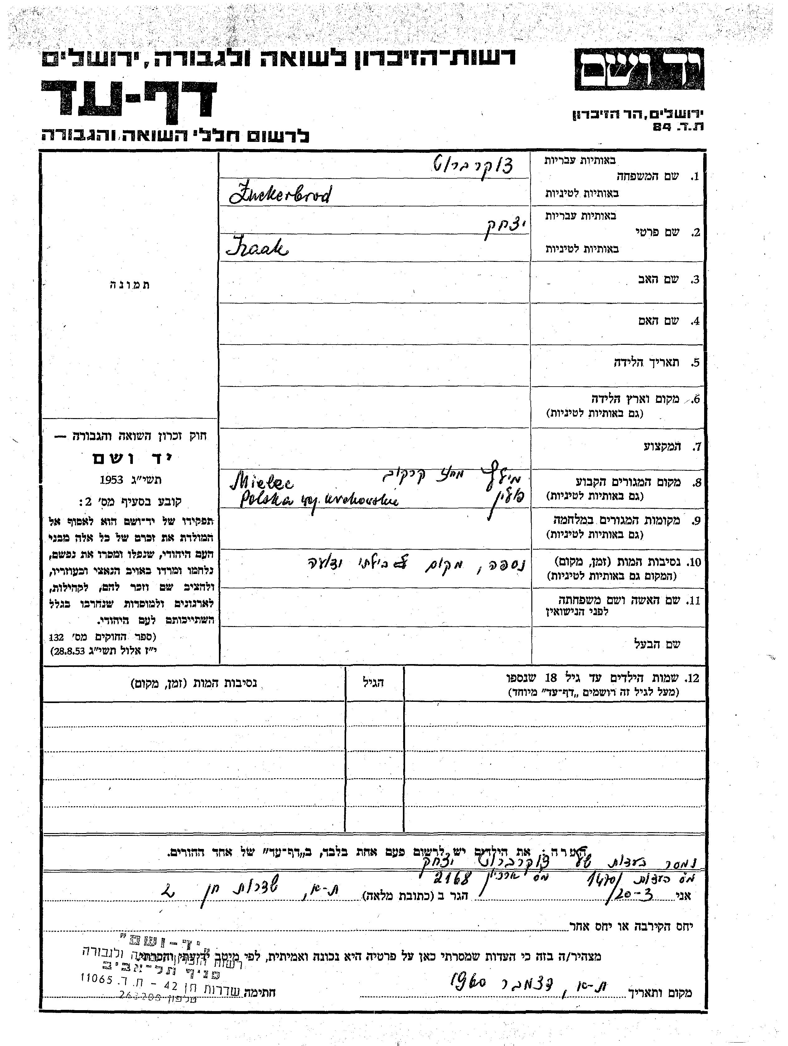 Jzaak Zuckerbrod. Avant la seconde guerre mondiale il vivait à Mielec, Pologne.