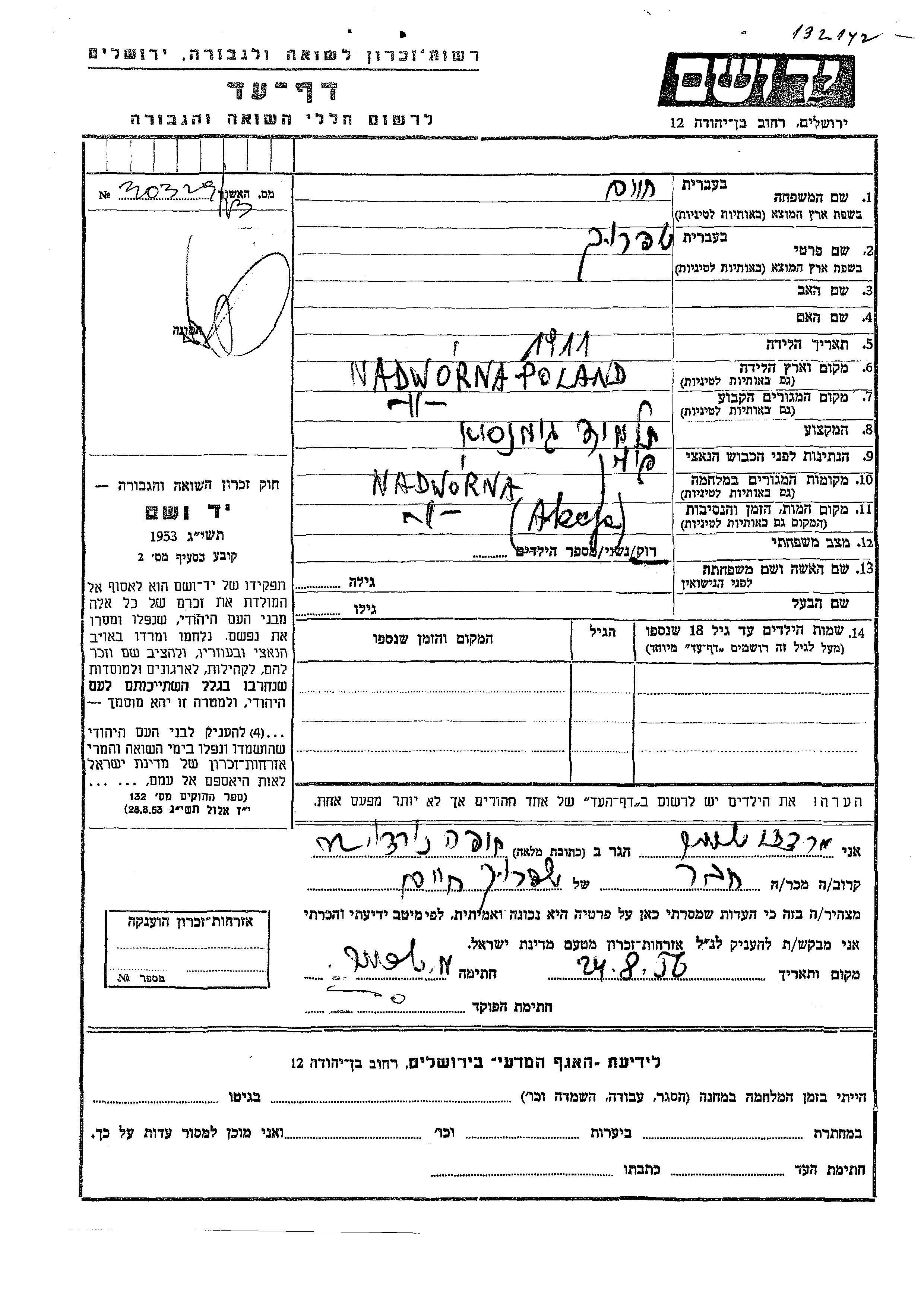 Yad Vashem - Pages of Testimony Names Memorial Collection
