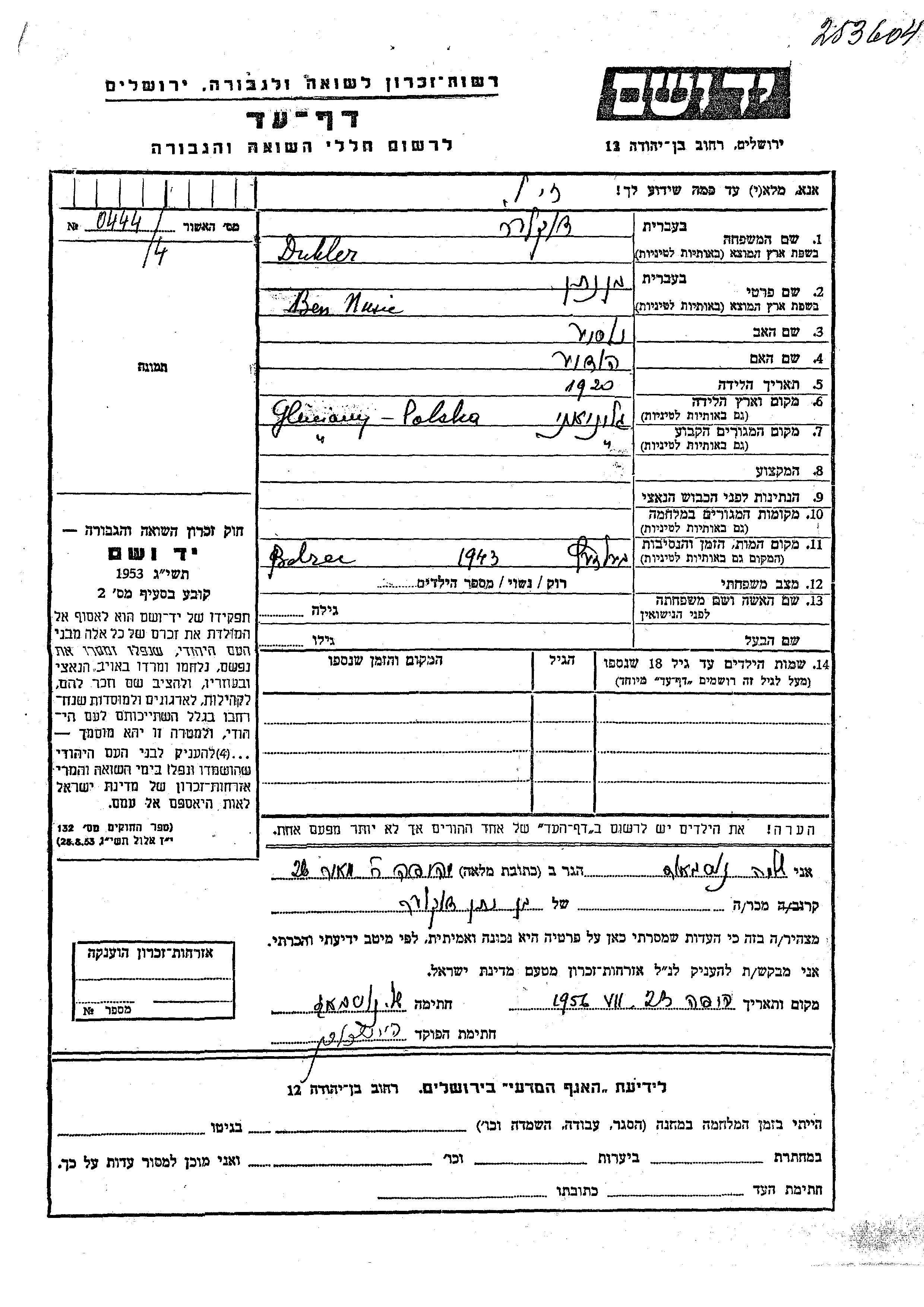 Yad Vashem - Pages of Testimony Names Memorial Collection