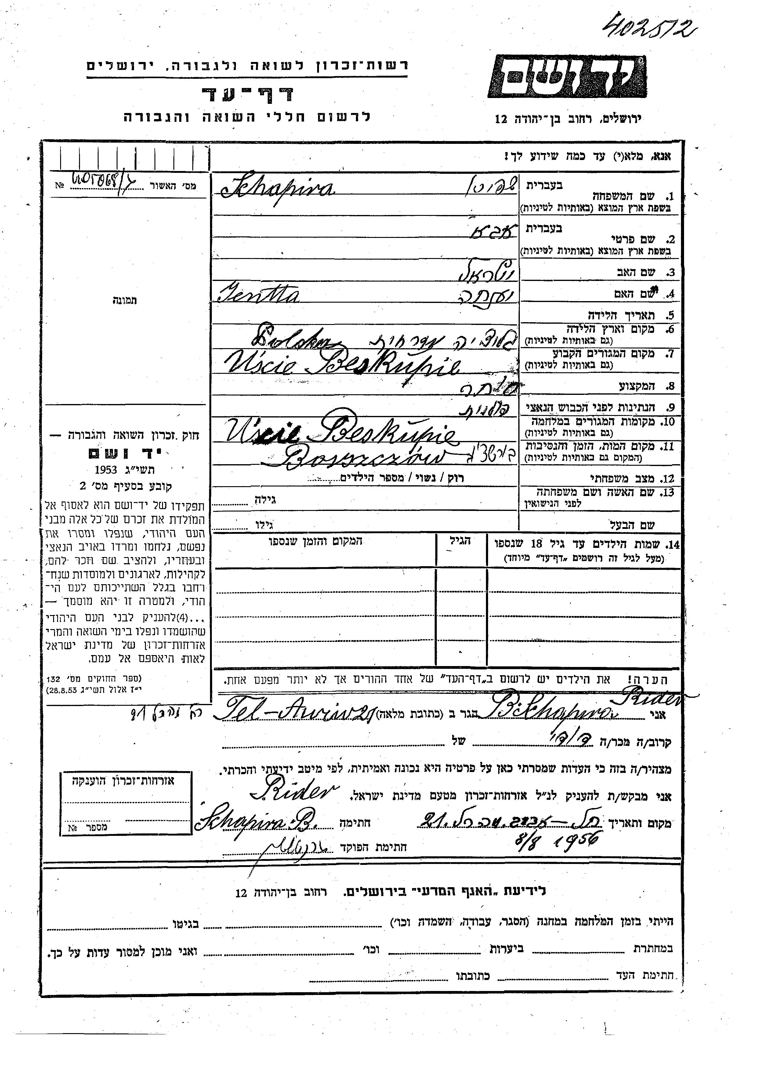 Yad Vashem - Pages of Testimony Names Memorial Collection