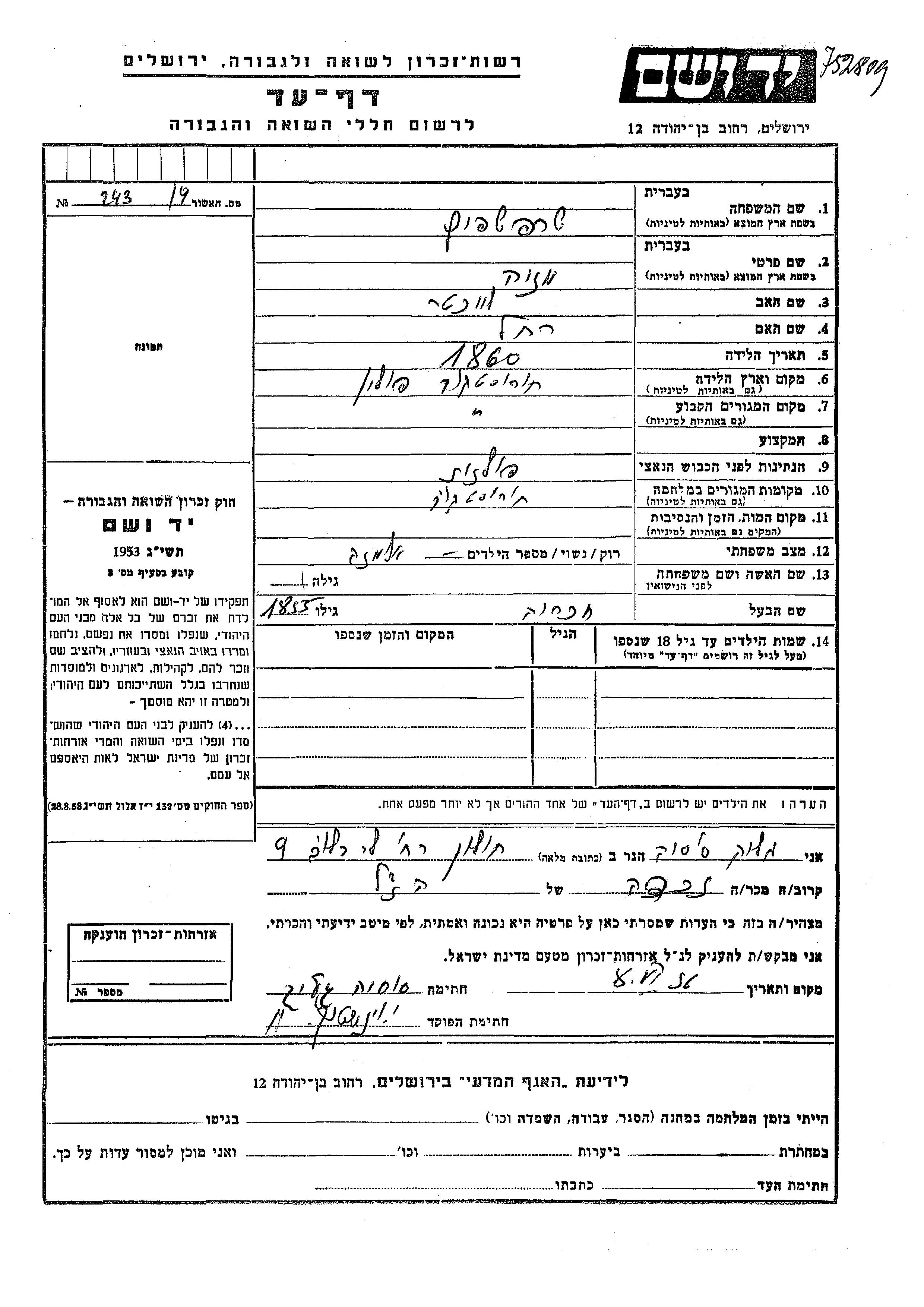 Yad Vashem - Pages of Testimony Names Memorial Collection