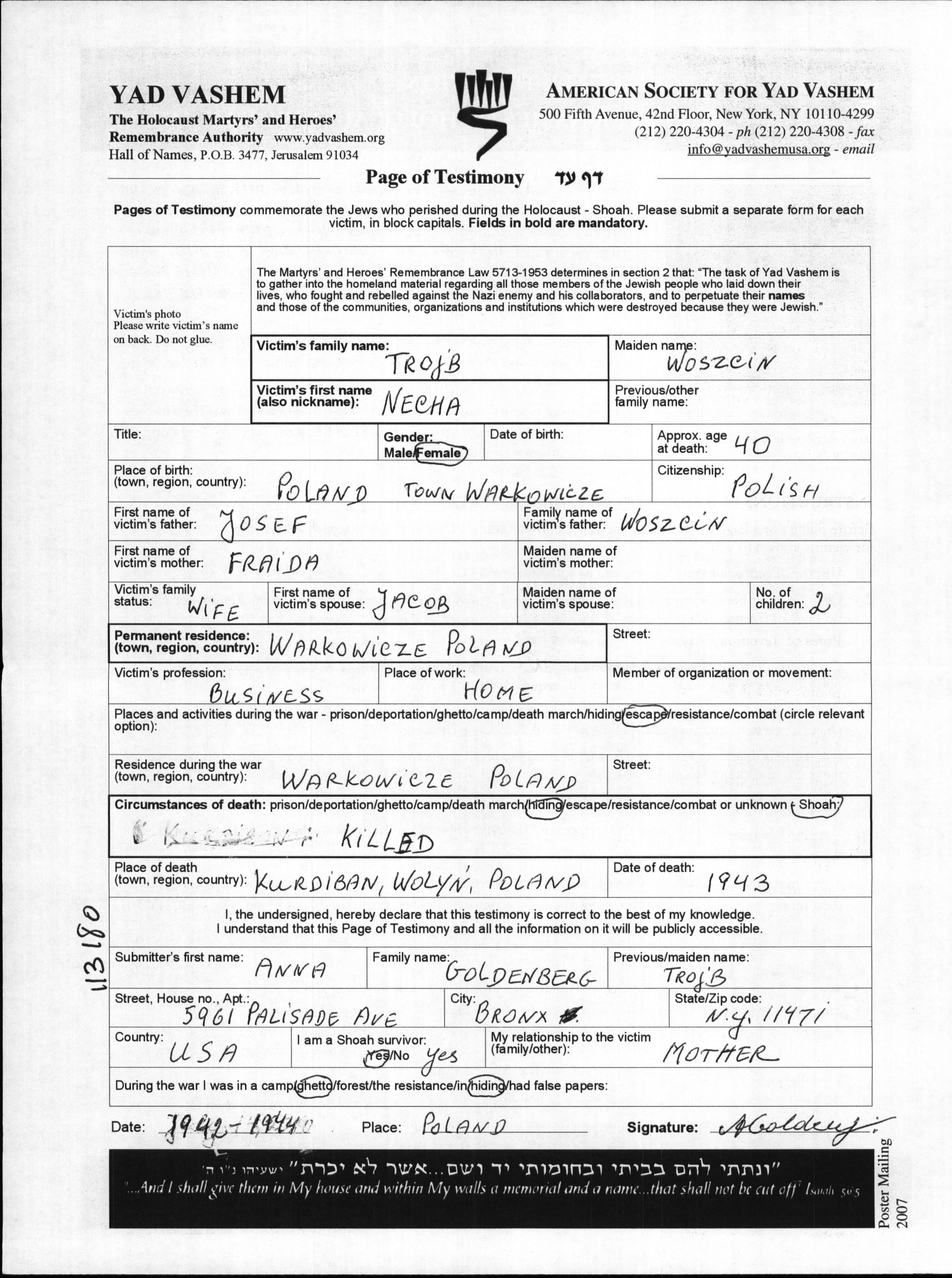 Recherche par date de la mort pendant la période de la Shoah: 1933-1945. Sélectionnez 'Exact'; dans la liste pour rechercher l'année exacte, ou sélectionner '+/- 2 ans'; ou '+/- 5 ans