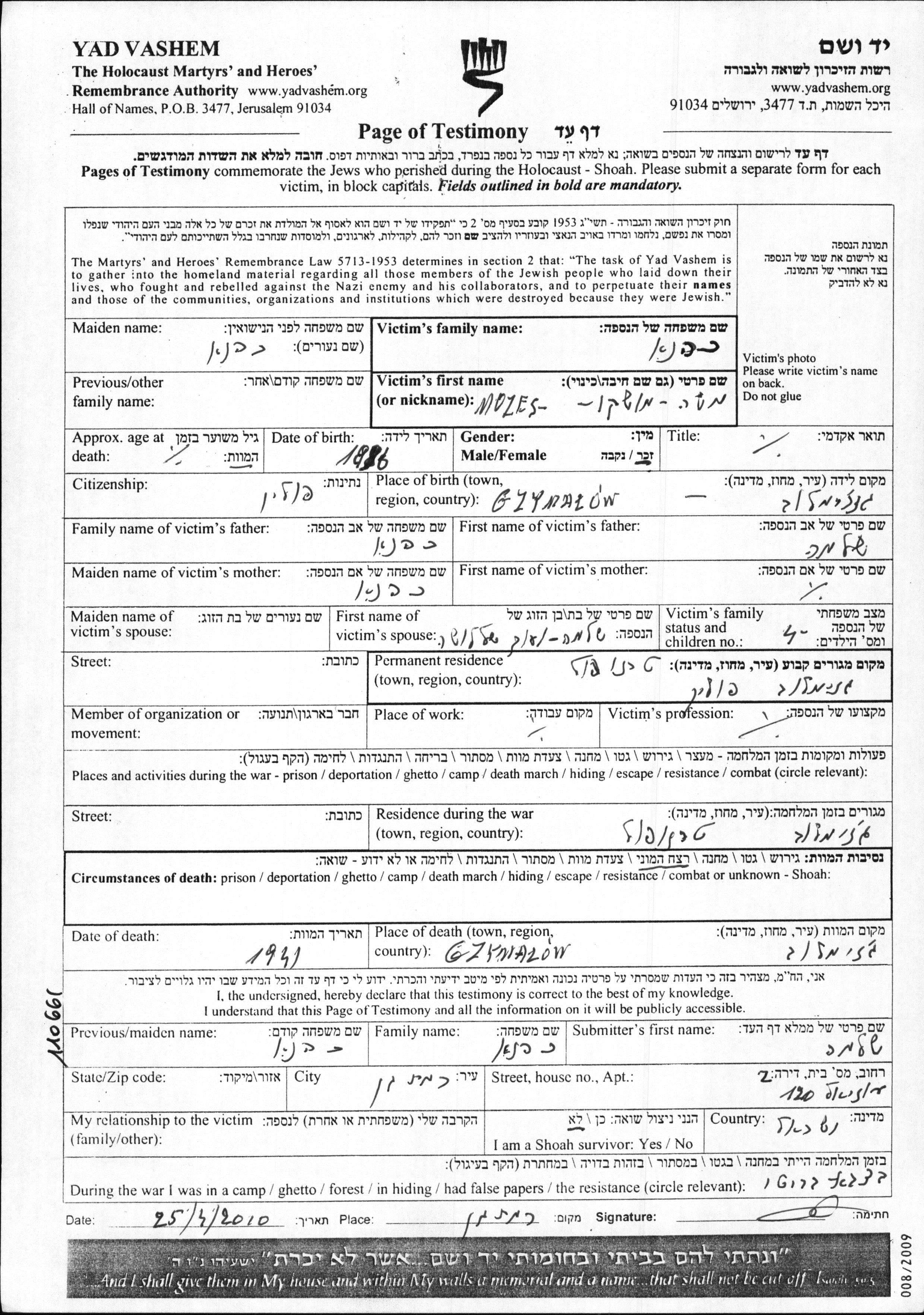 Yad Vashem - Pages of Testimony Names Memorial Collection