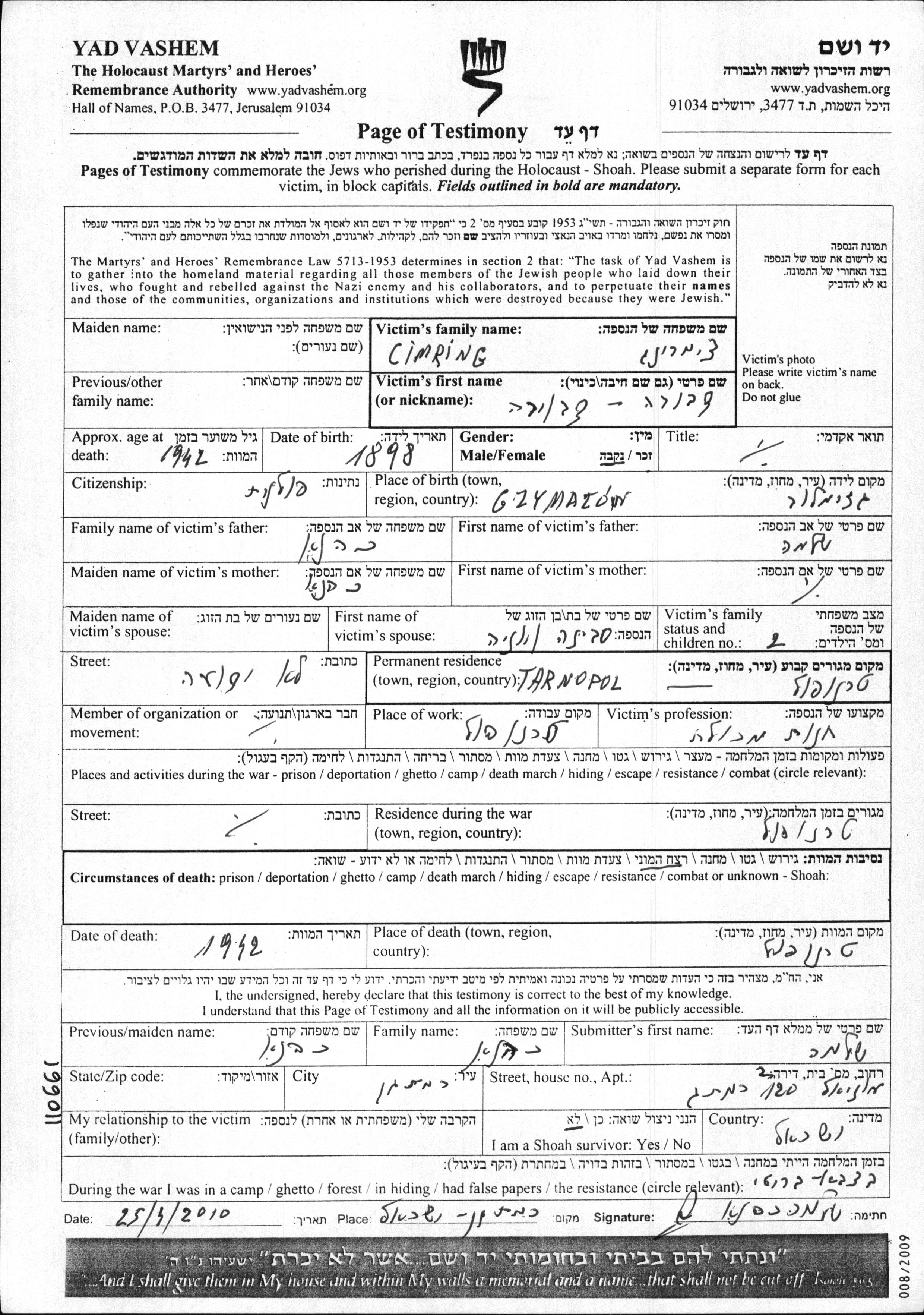 Yad Vashem - Pages of Testimony Names Memorial Collection