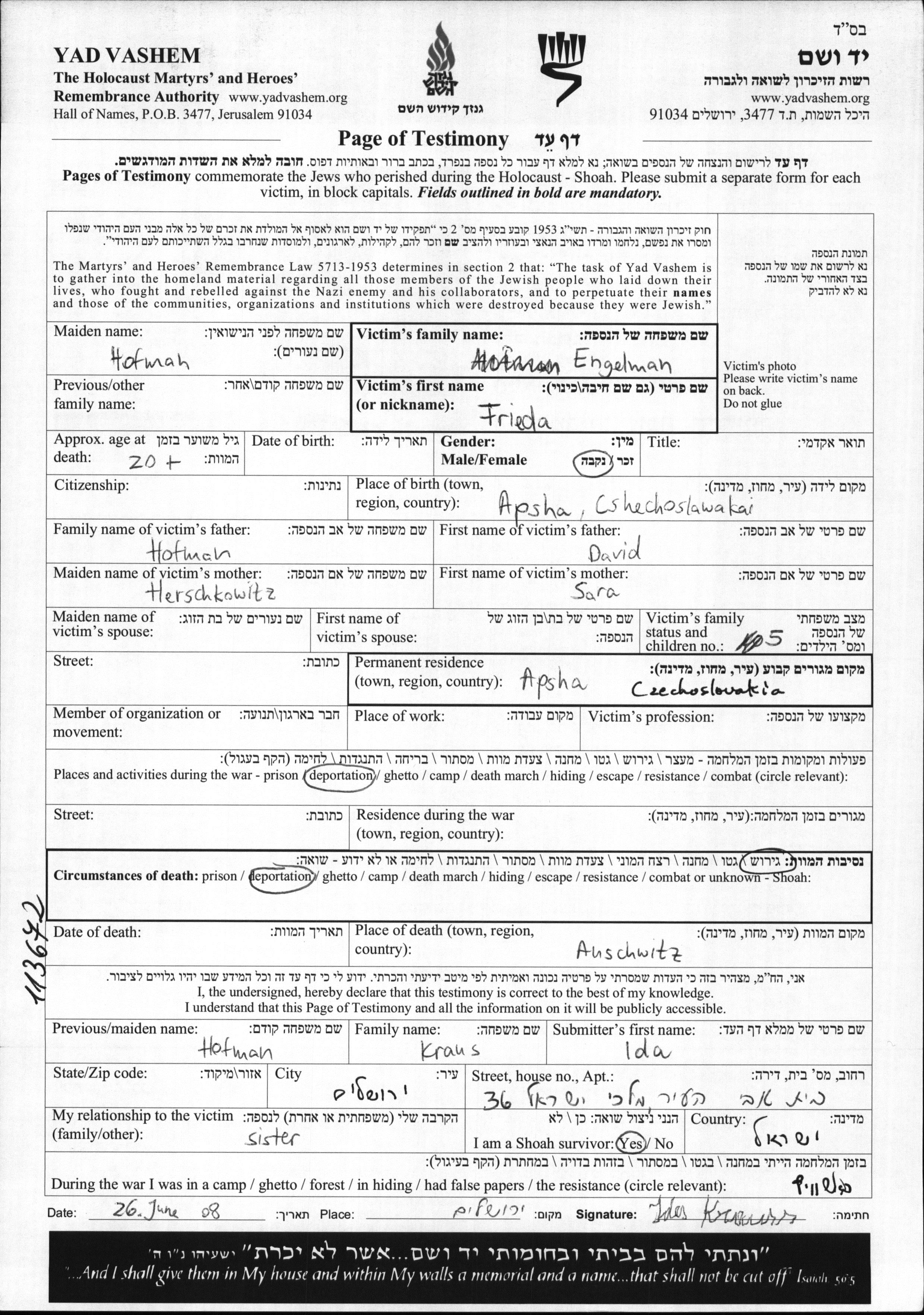 Durant la guerre/Shoah: