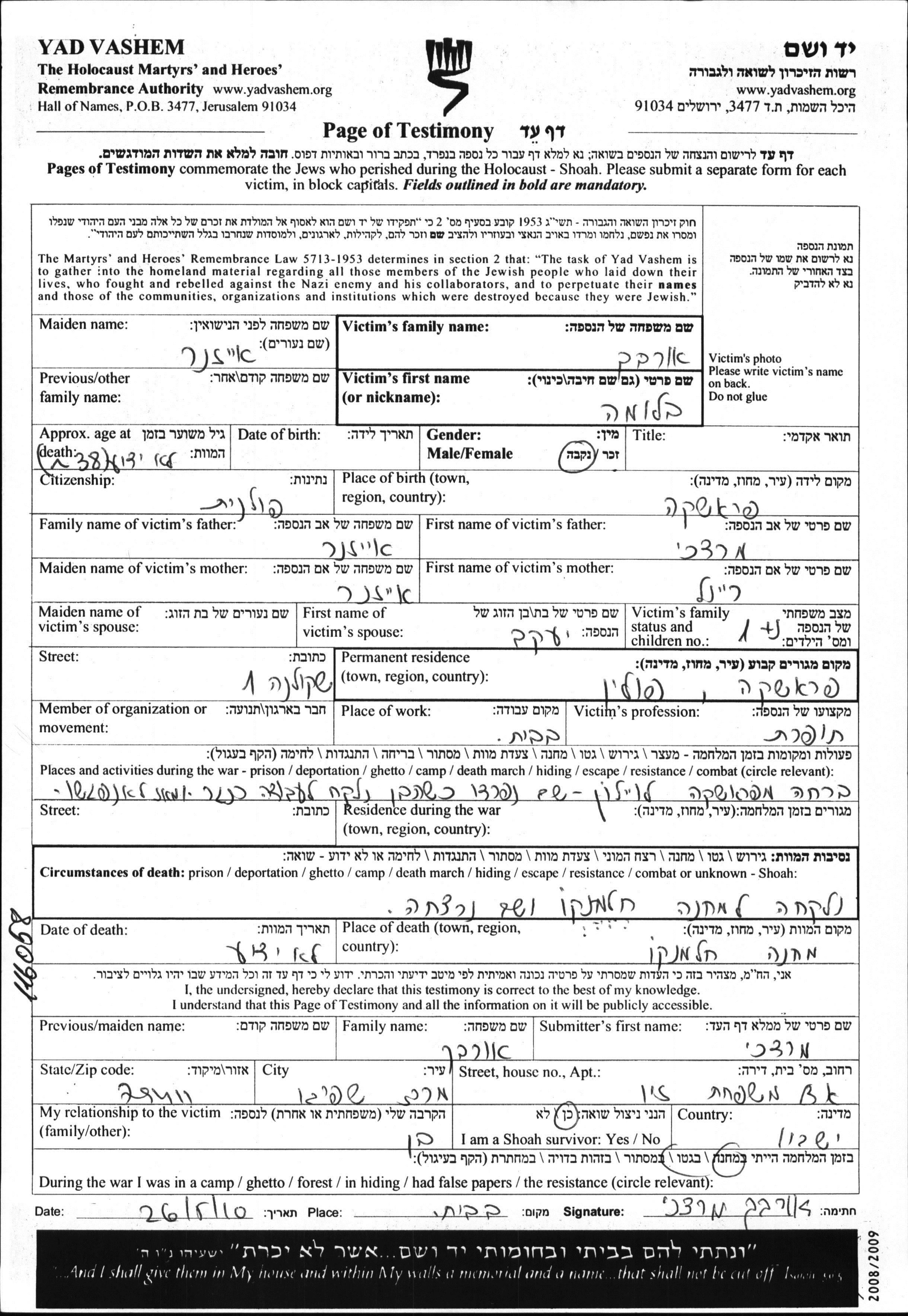 Yad Vashem - Pages of Testimony Names Memorial Collection