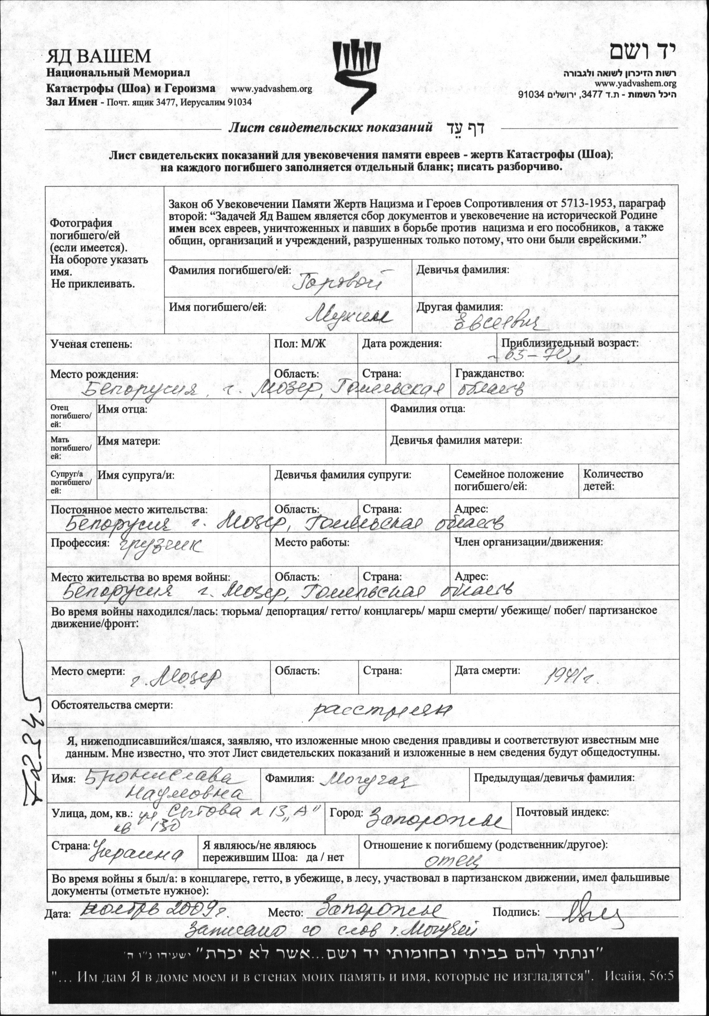 Yad Vashem - Pages of Testimony Names Memorial Collection