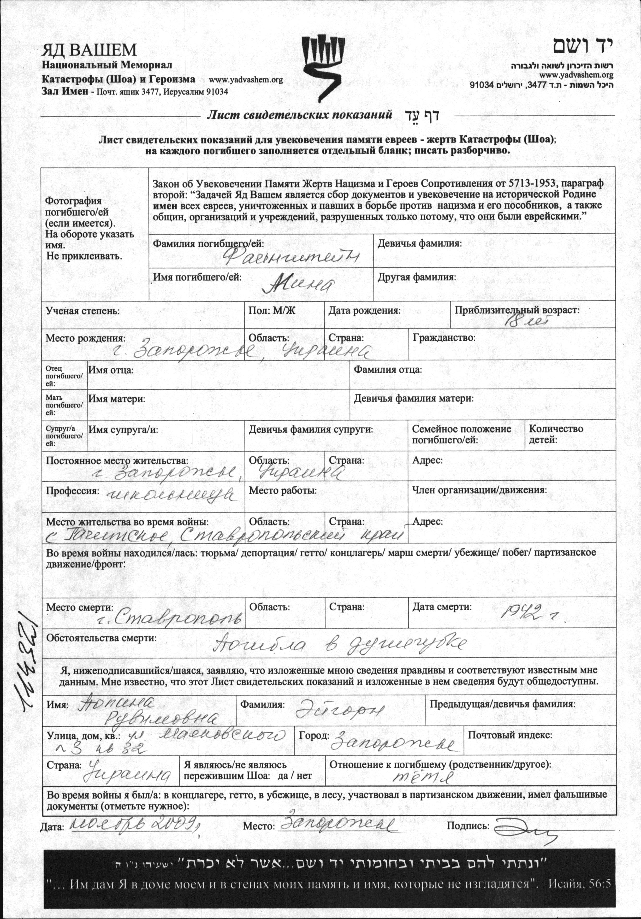 Yad Vashem - Pages of Testimony Names Memorial Collection