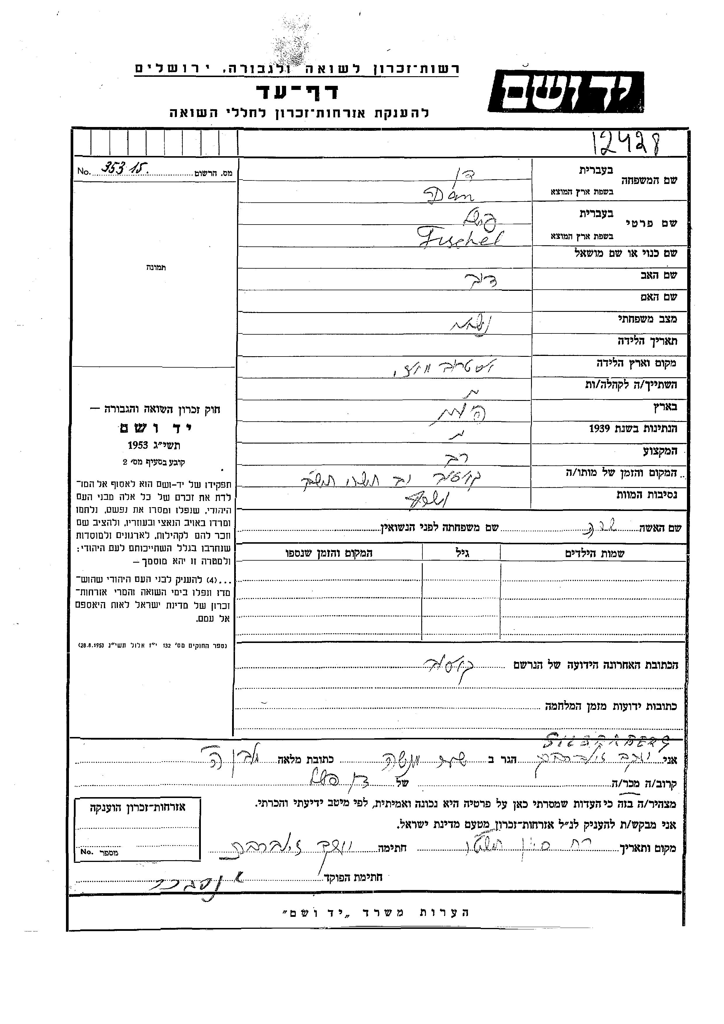 Fischel a été assassiné pendant la Shoah. Lieu de la mort: Marczewszczyzna Castle Area, Pologne en 03/10/1941.