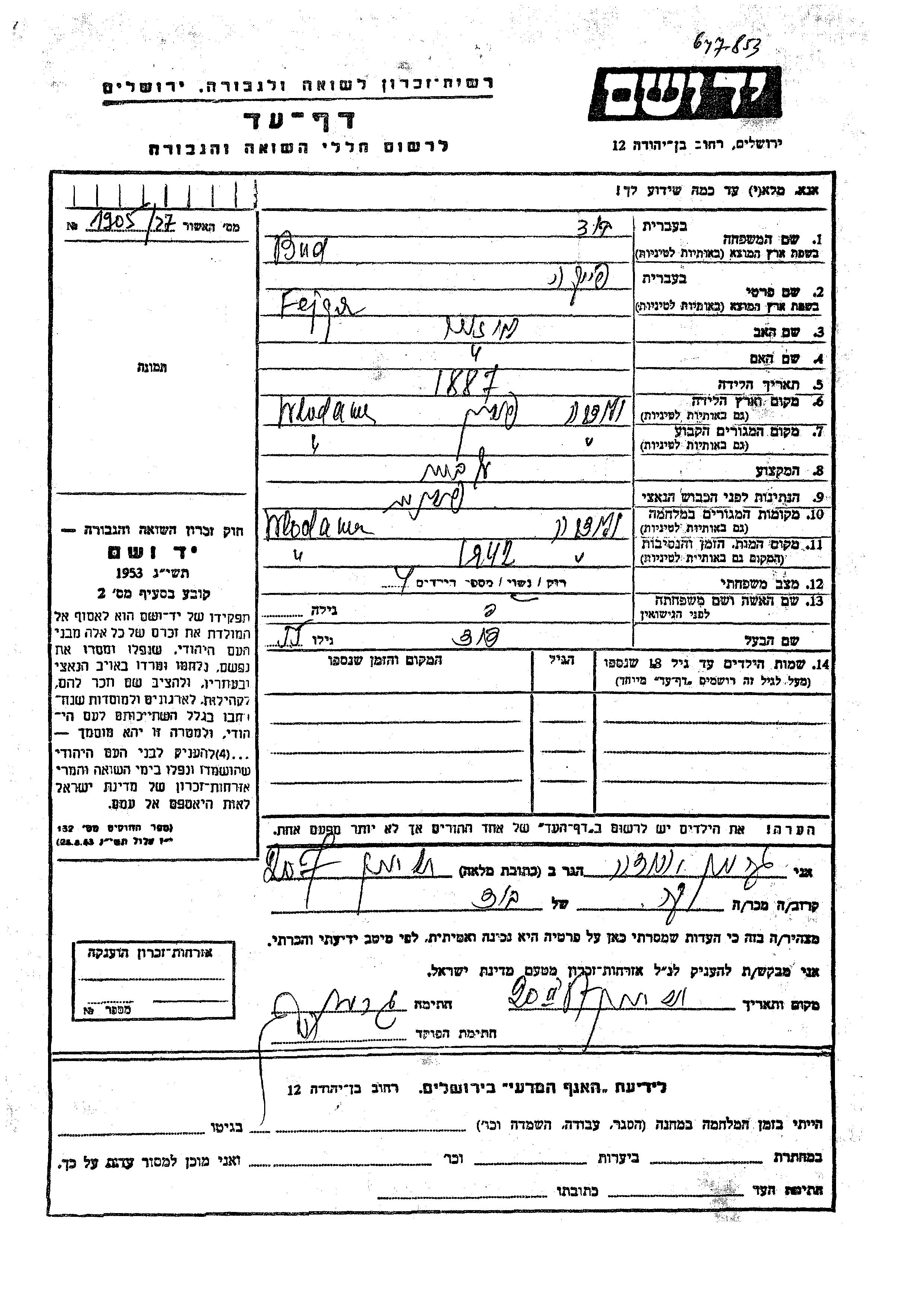 Yad Vashem - Pages of Testimony Names Memorial Collection