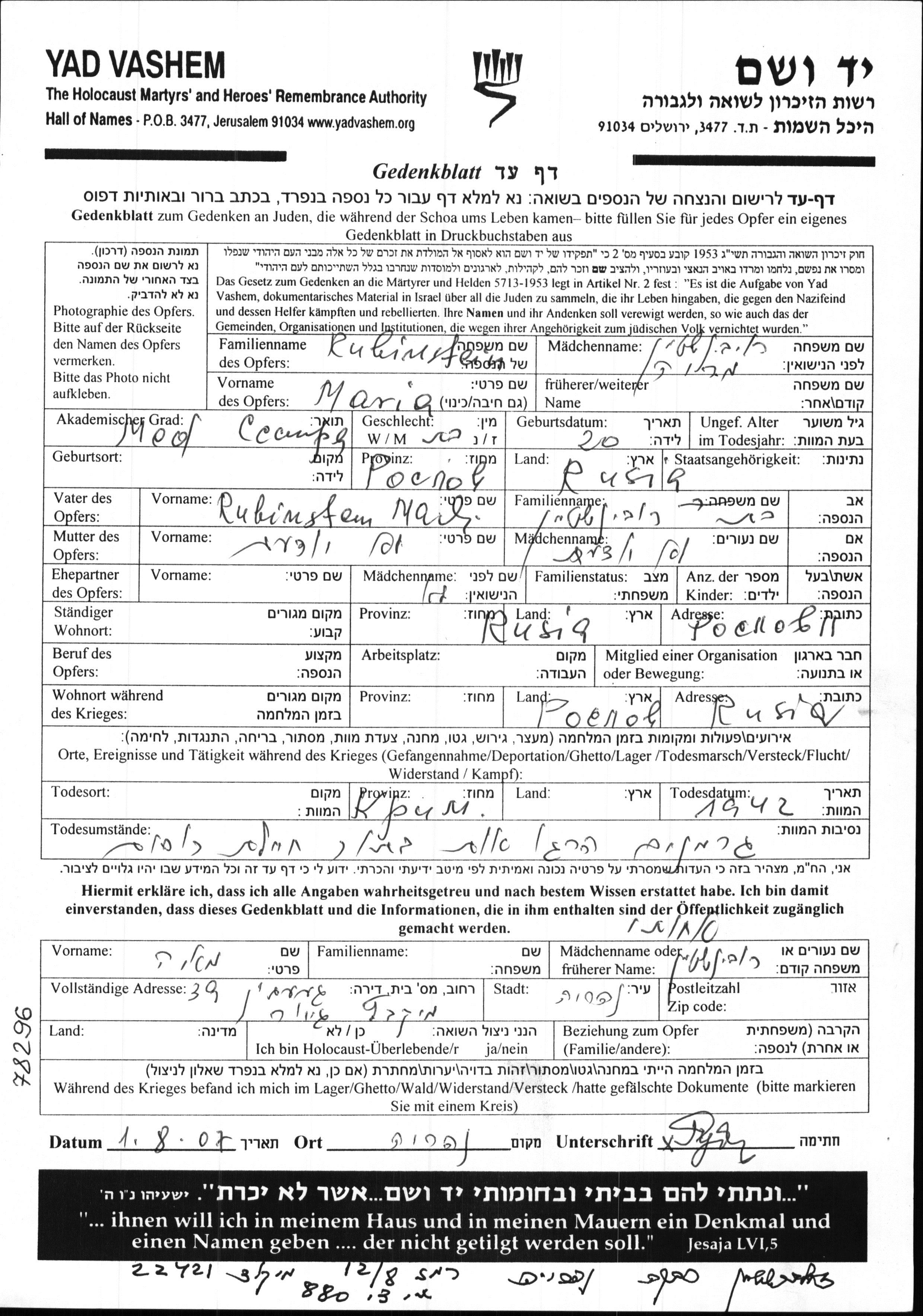 Yad Vashem - Pages of Testimony Names Memorial Collection