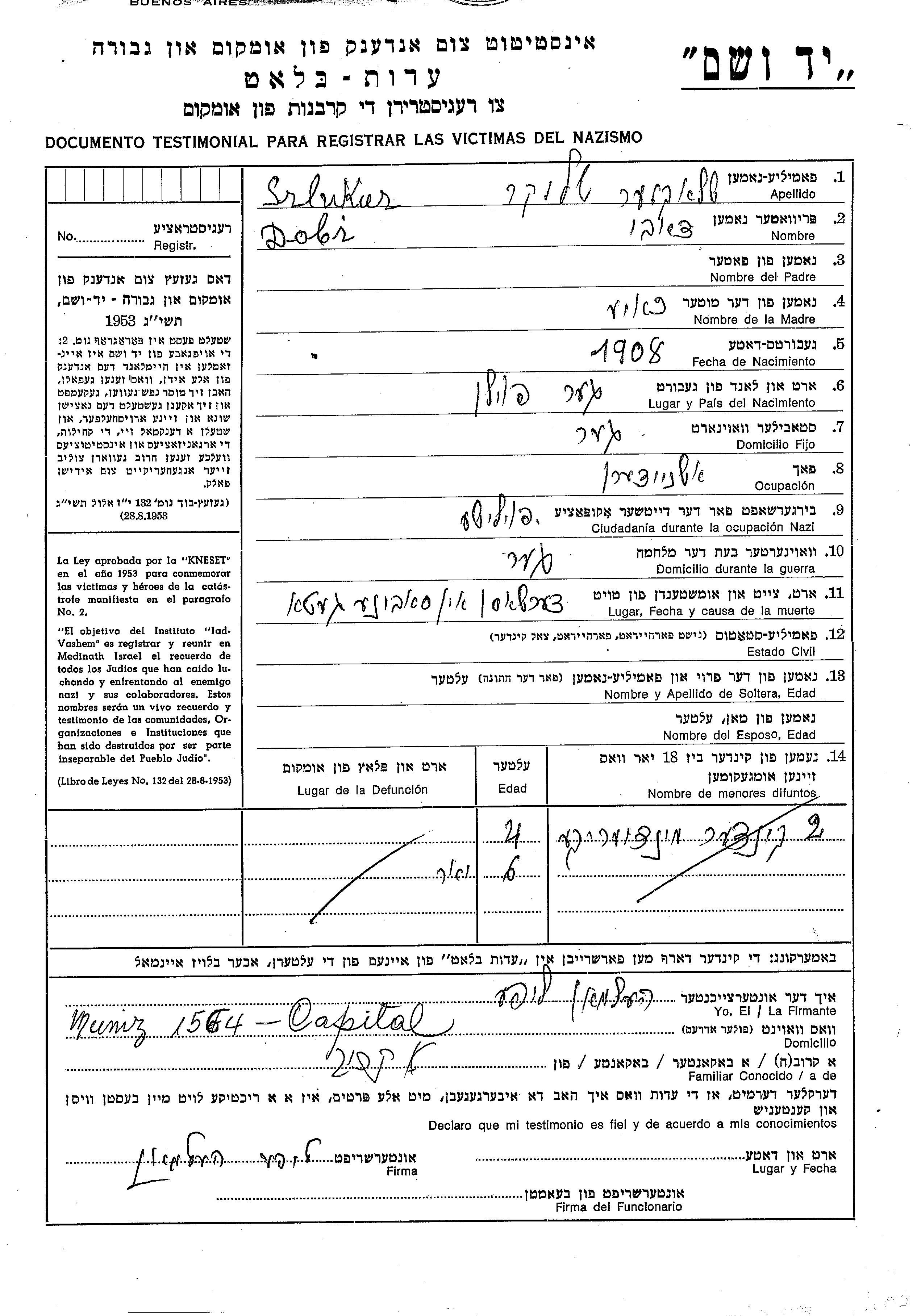 Yad Vashem - Pages of Testimony Names Memorial Collection