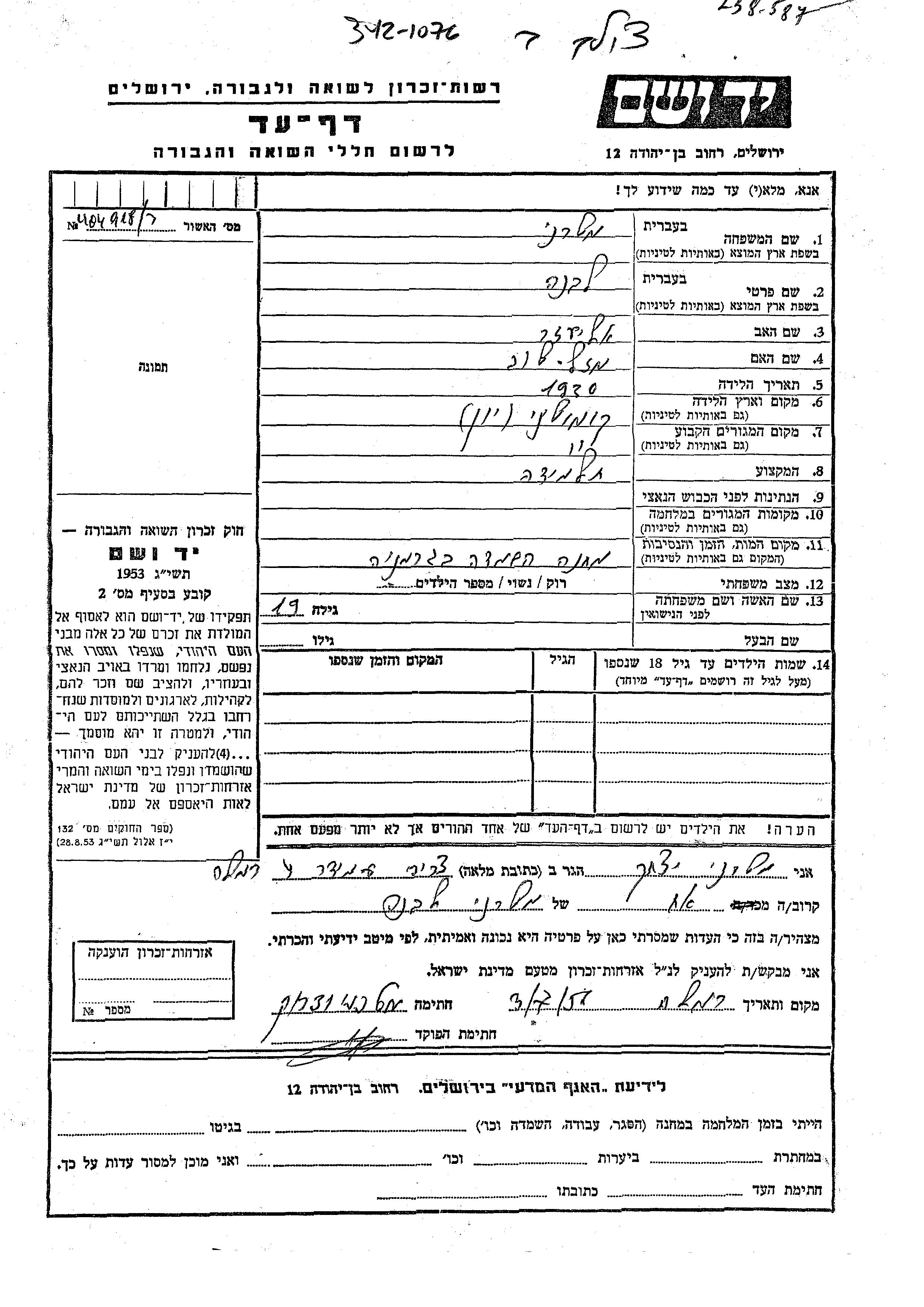 Yad Vashem - Pages of Testimony Names Memorial Collection