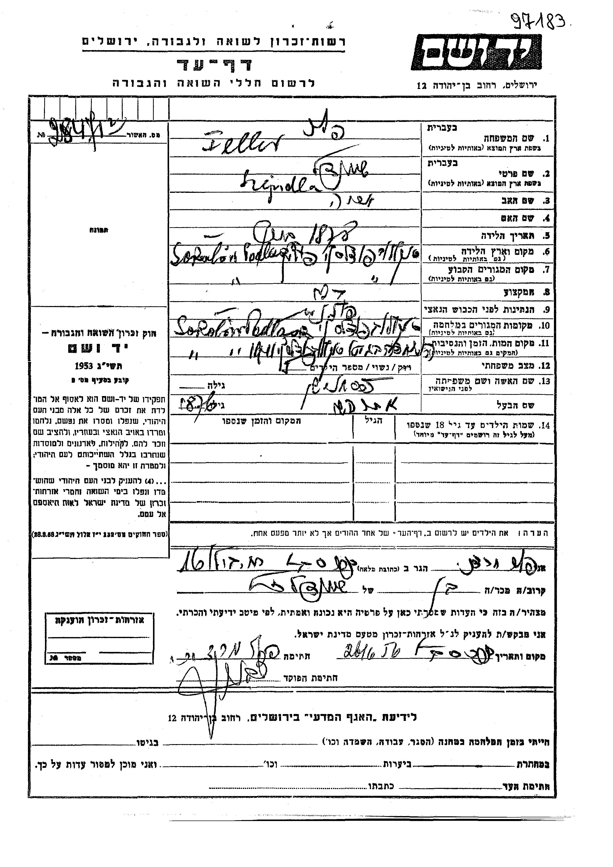 Yad Vashem - Pages of Testimony Names Memorial Collection