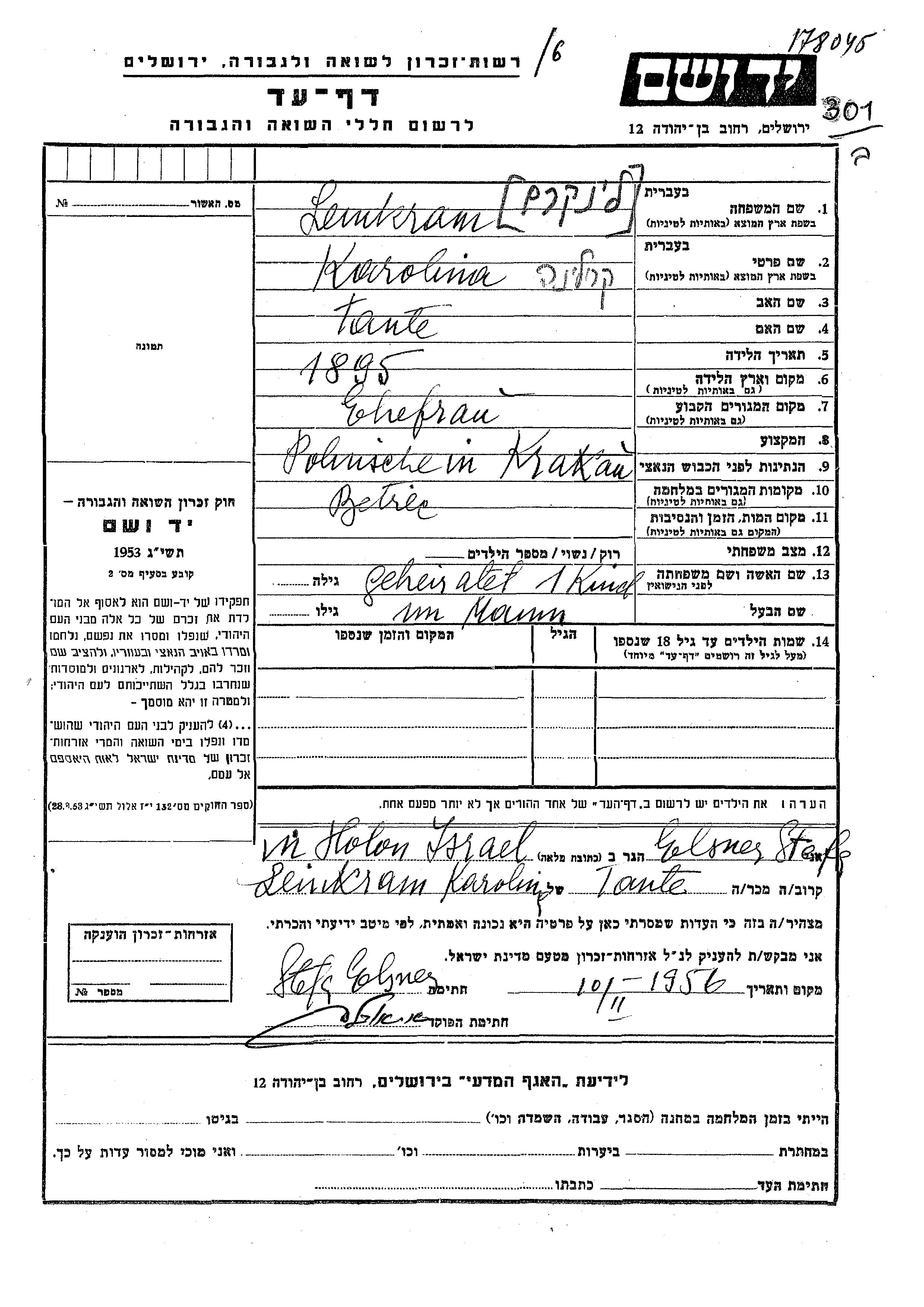Yad Vashem - Pages of Testimony Names Memorial Collection