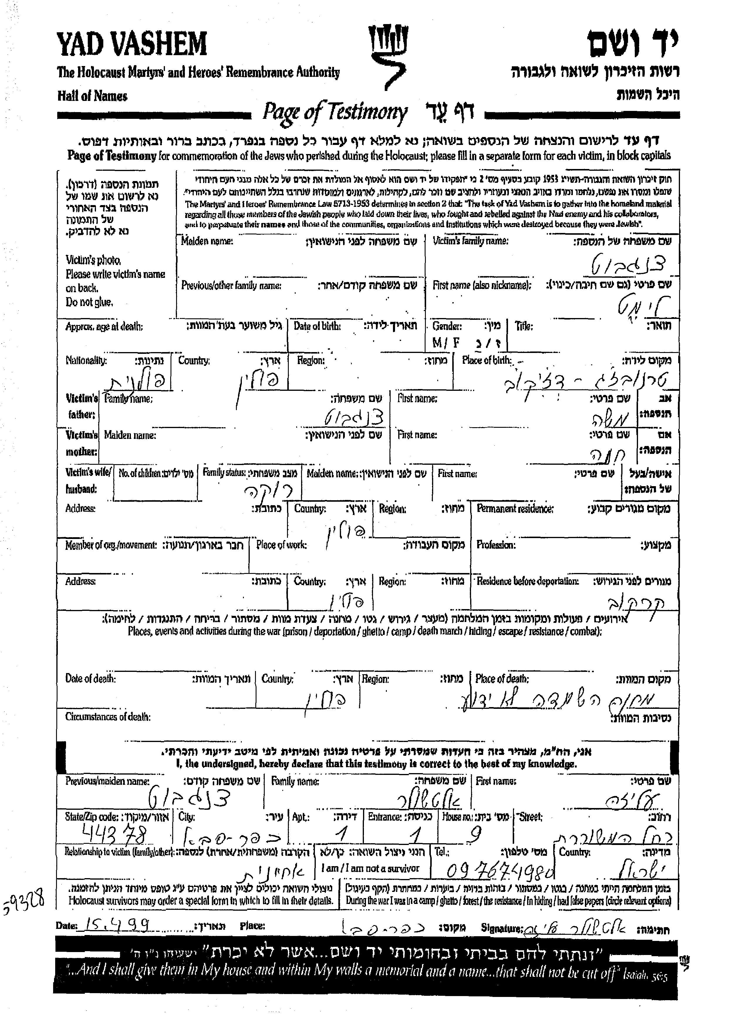 Yad Vashem - Pages of Testimony Names Memorial Collection