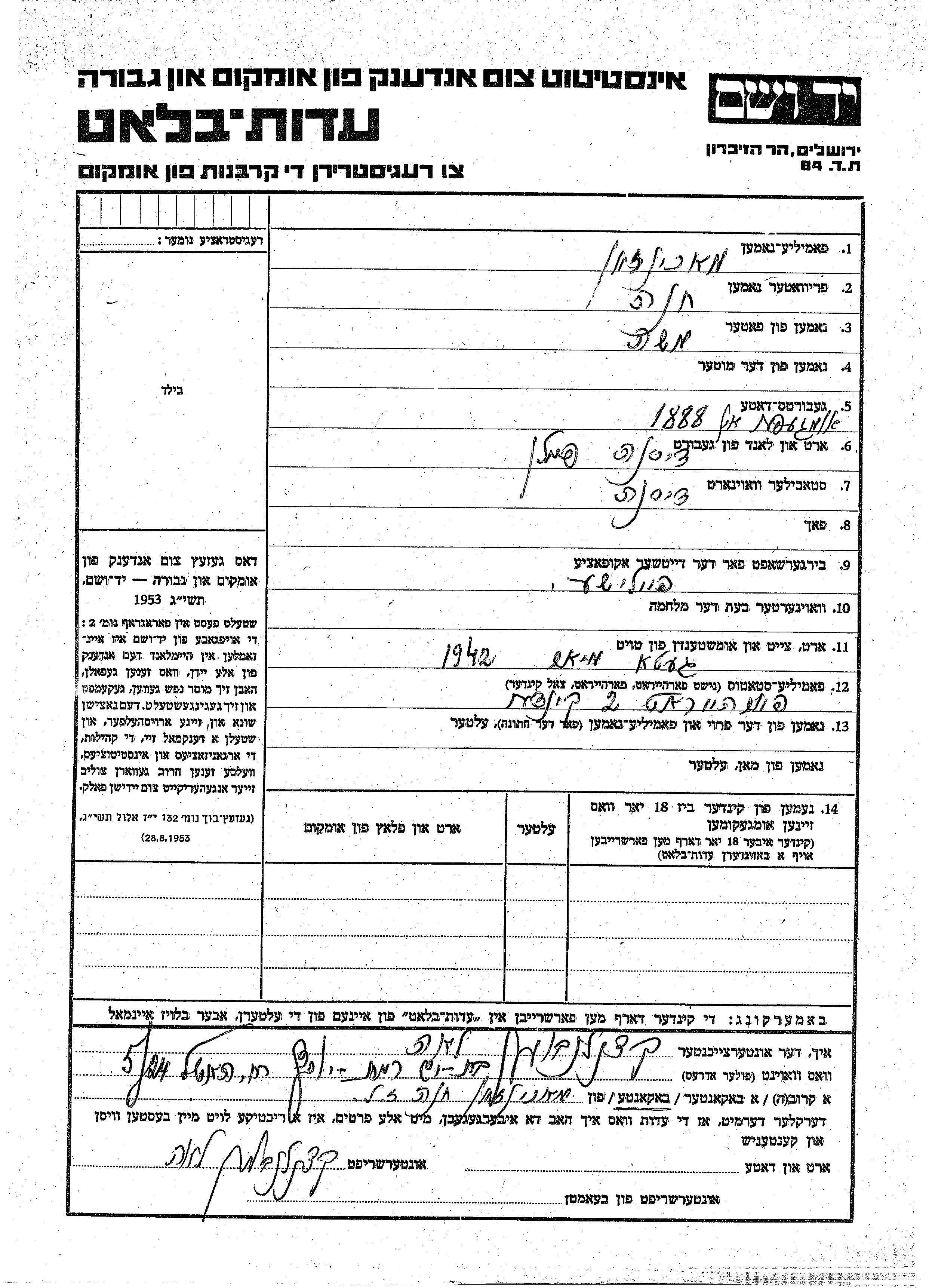 Yad Vashem - Pages of Testimony Names Memorial Collection