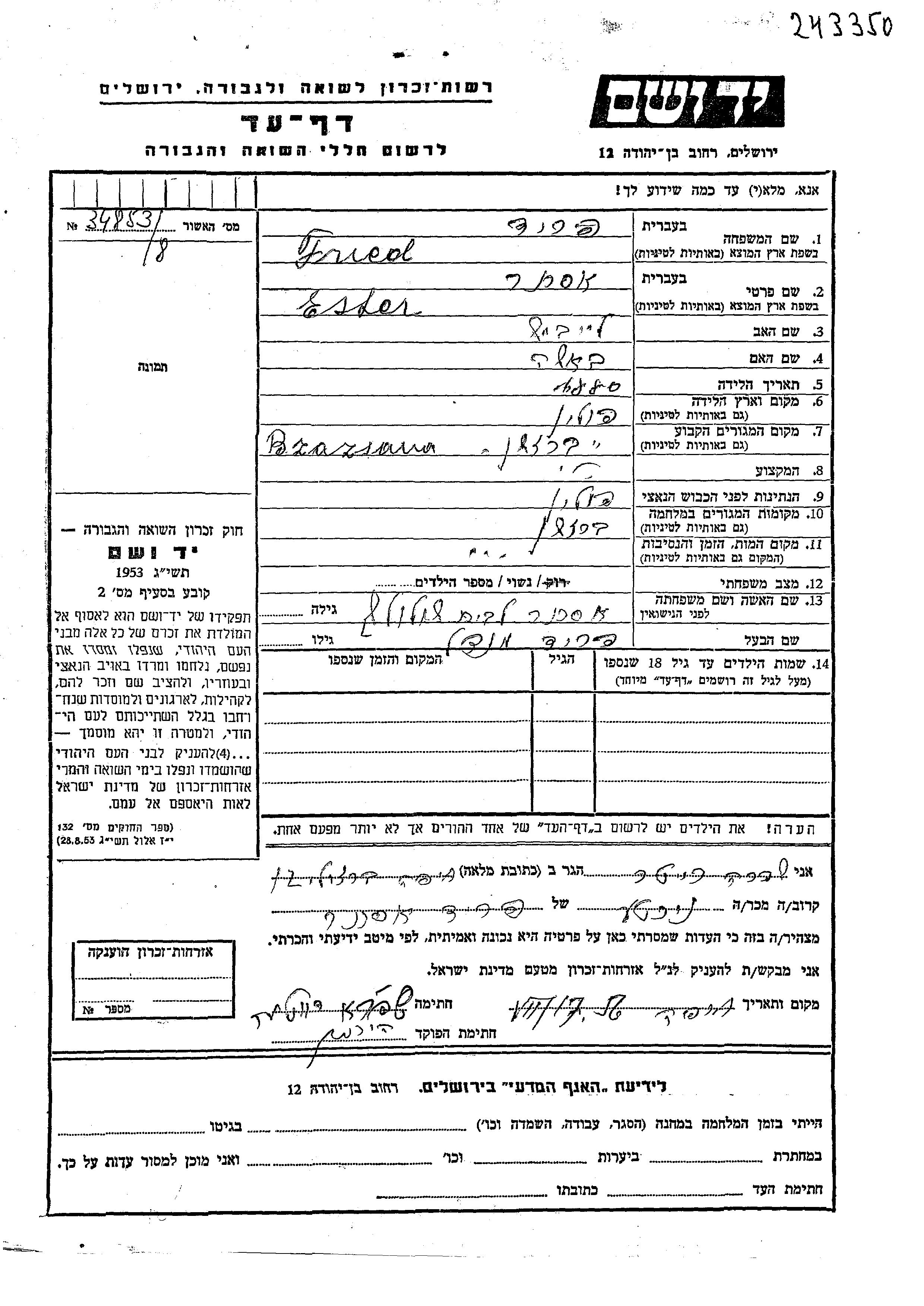 Yad Vashem - Pages of Testimony Names Memorial Collection