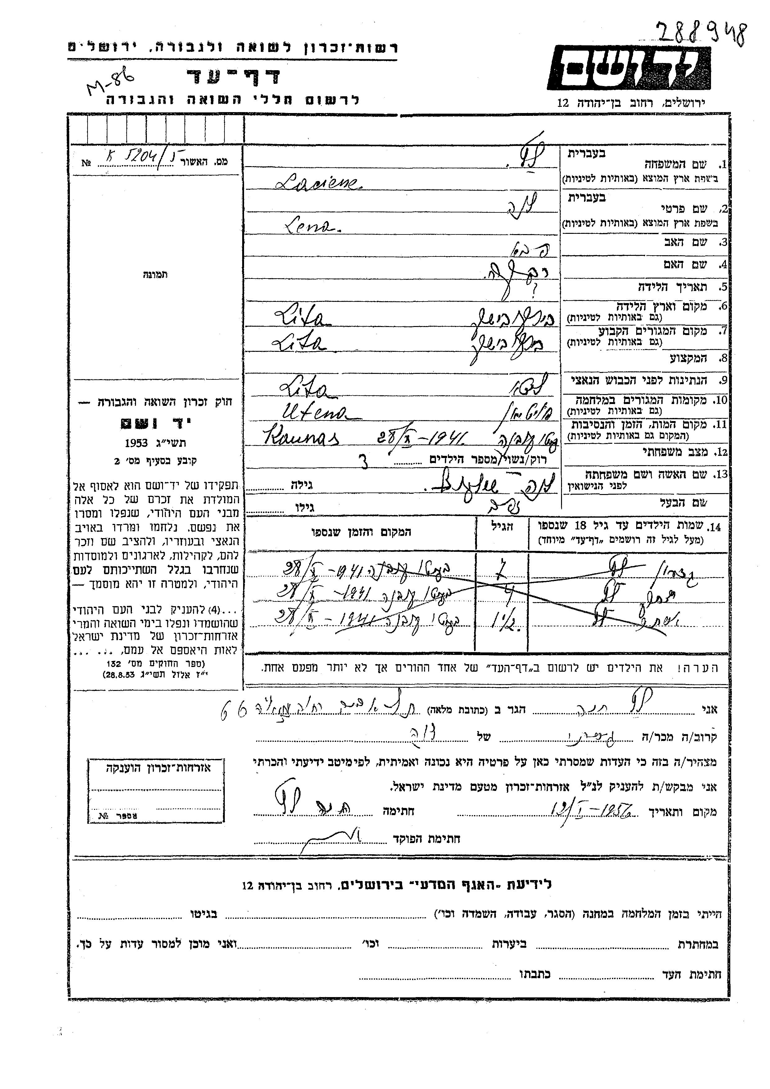 Laciene Lena Vilkavisk, Lituanie Feuille de témoignage