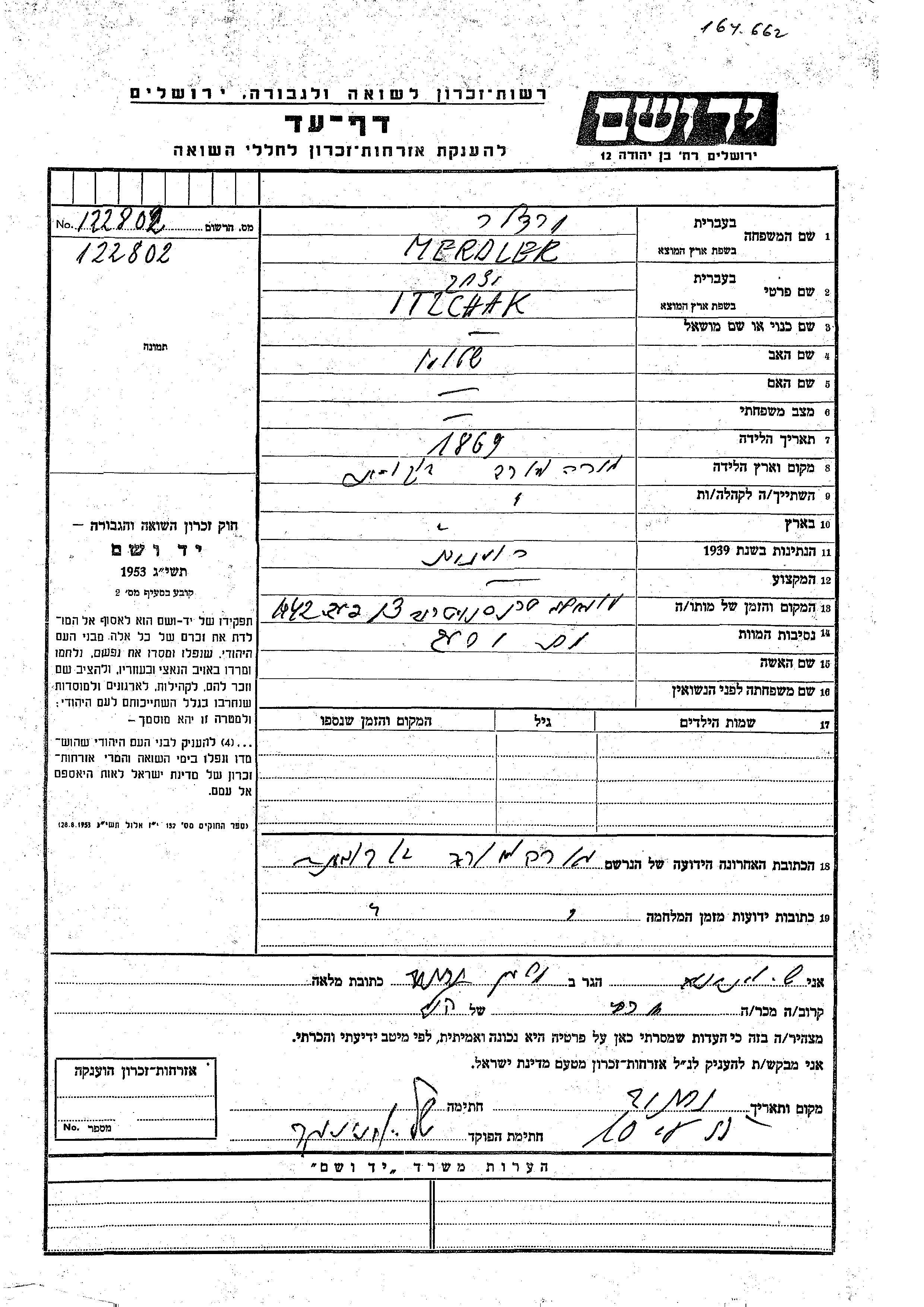 Itzchak a été assassiné pendant la Shoah. Lieu de la mort: Transnistria, Ukraine (URSS) en 1942.