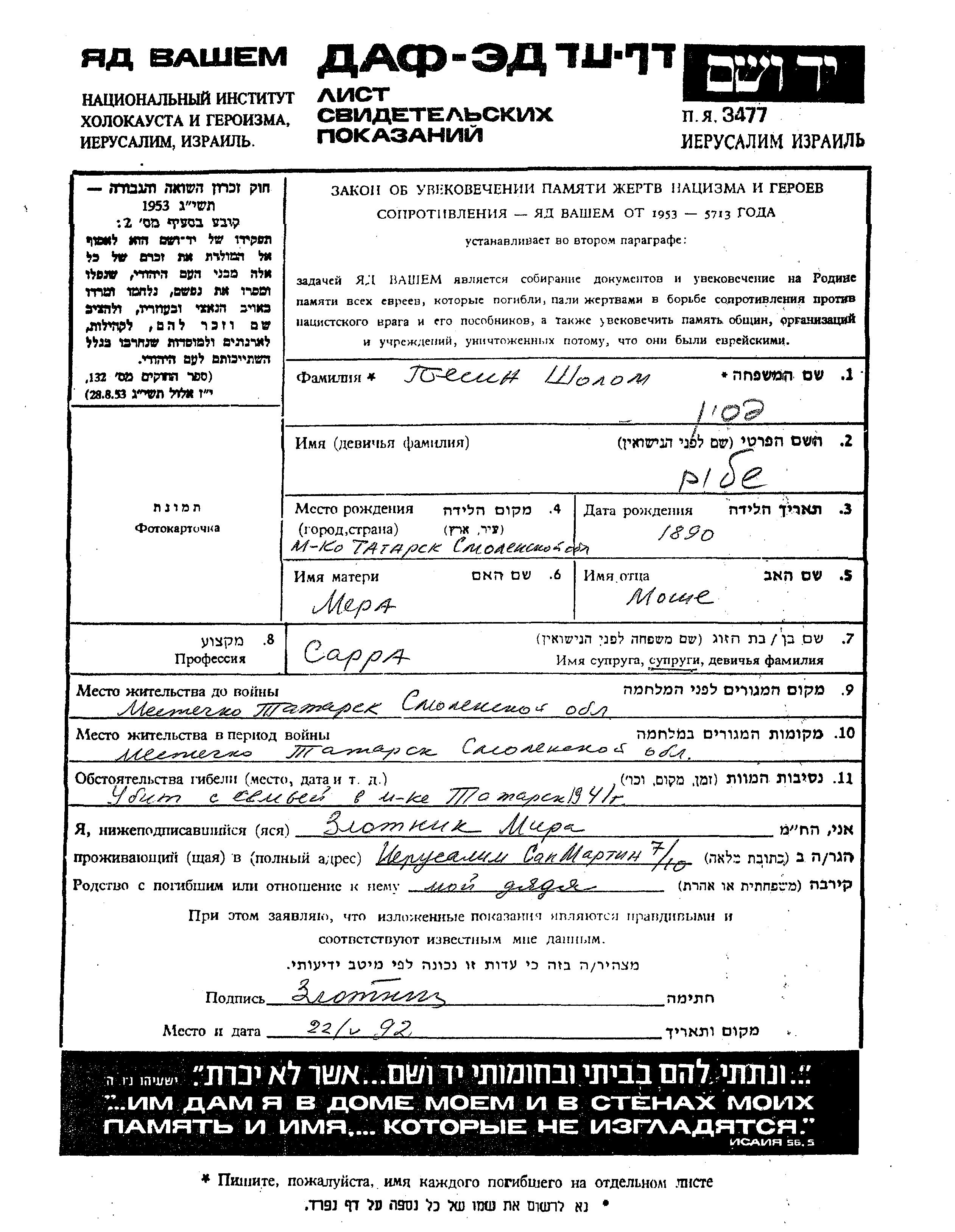 Yad Vashem - Pages of Testimony Names Memorial Collection