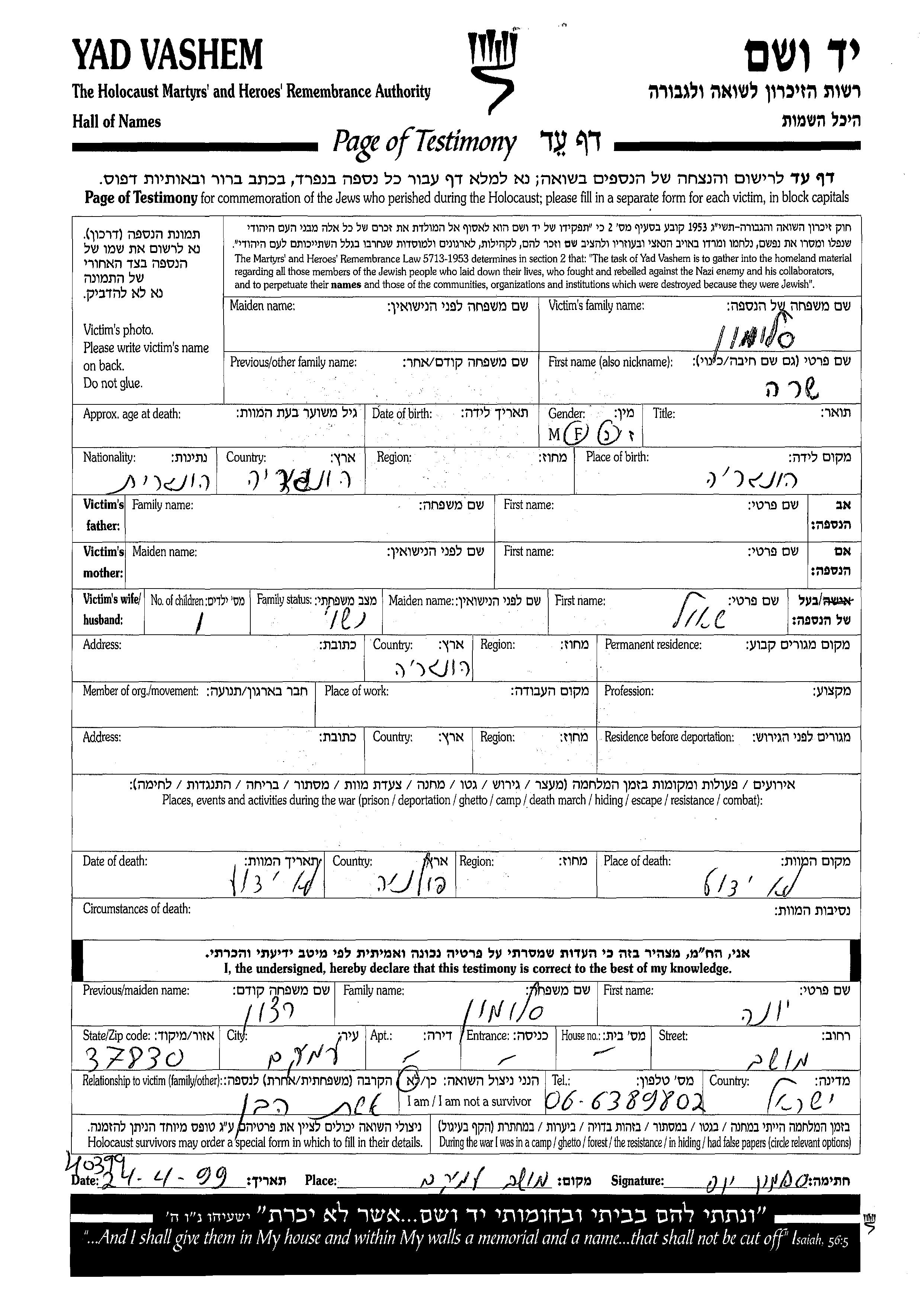 Yad Vashem - Pages of Testimony Names Memorial Collection