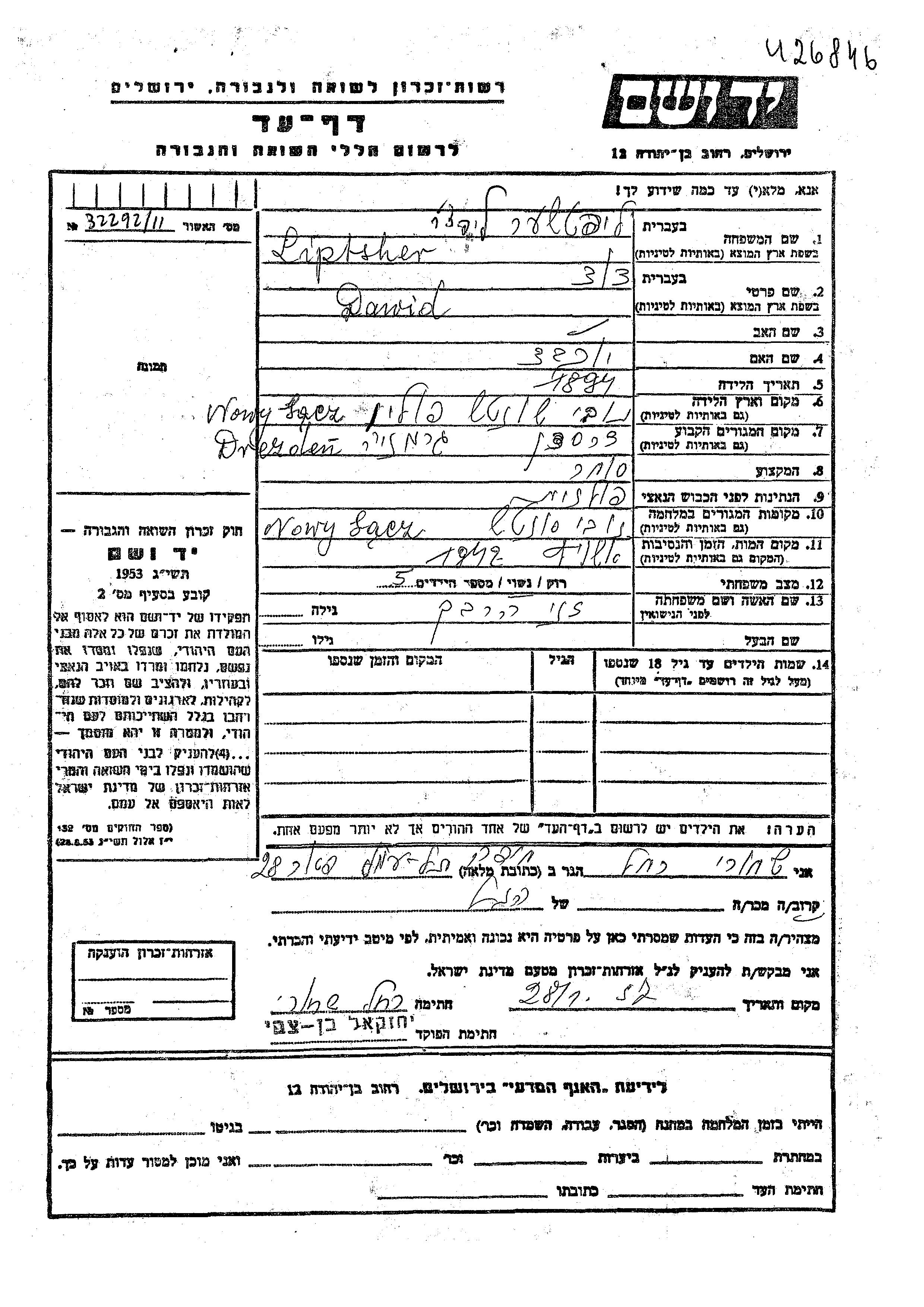 Liptsher Lipcher Dawid 1894 Drezden, Allemagne Feuille de témoignage