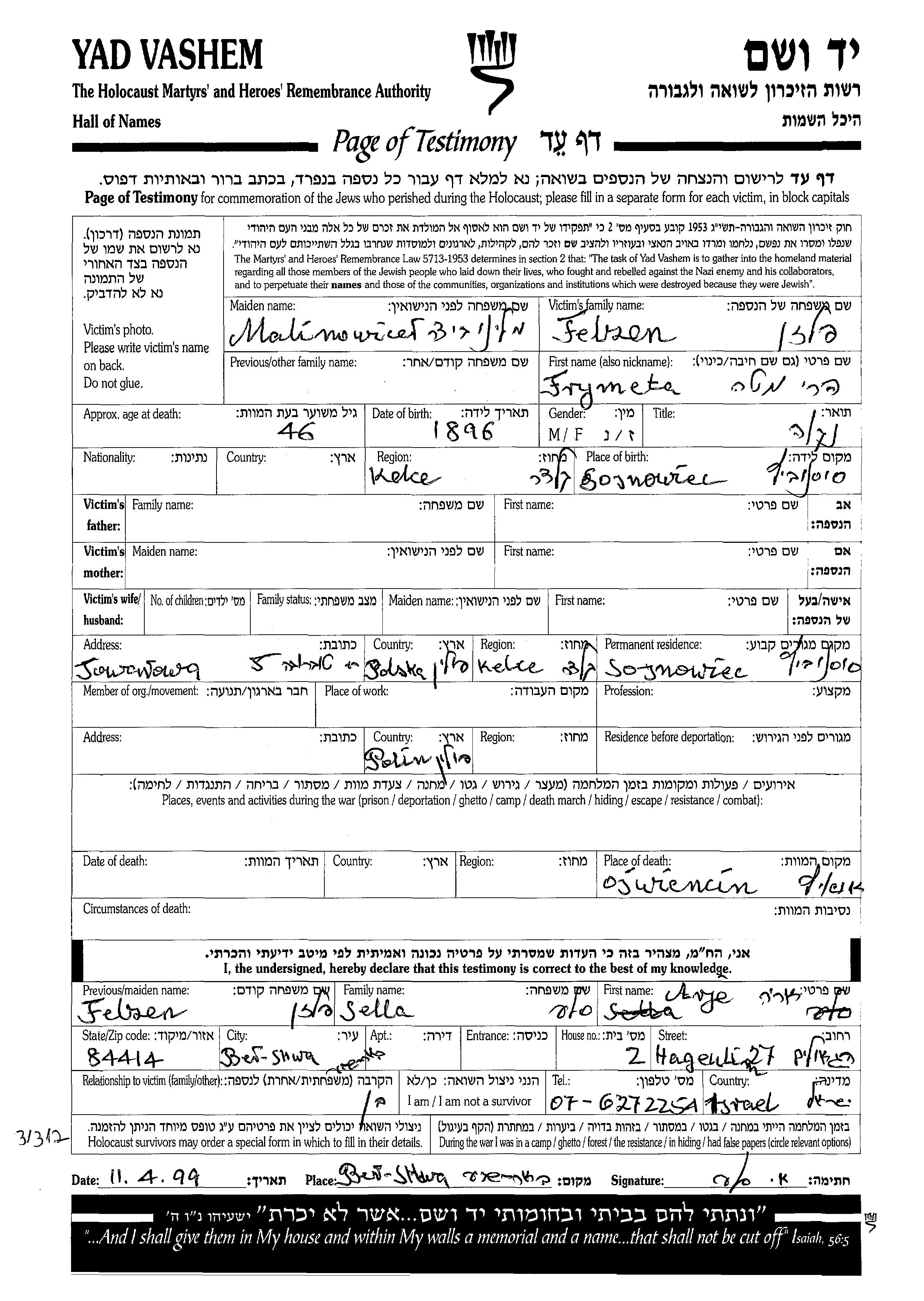 Yad Vashem - Pages of Testimony Names Memorial Collection