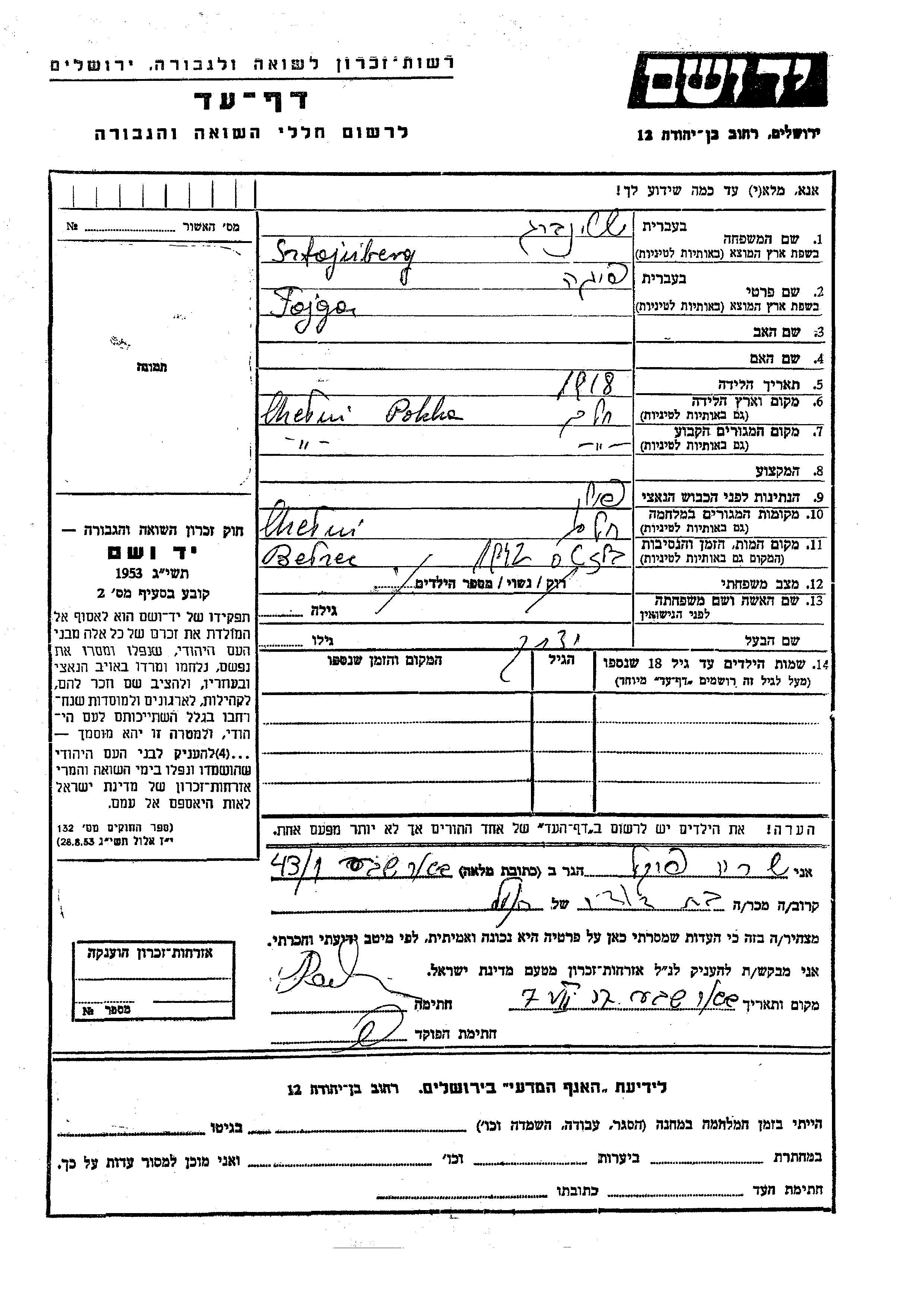 Yad Vashem - Pages of Testimony Names Memorial Collection