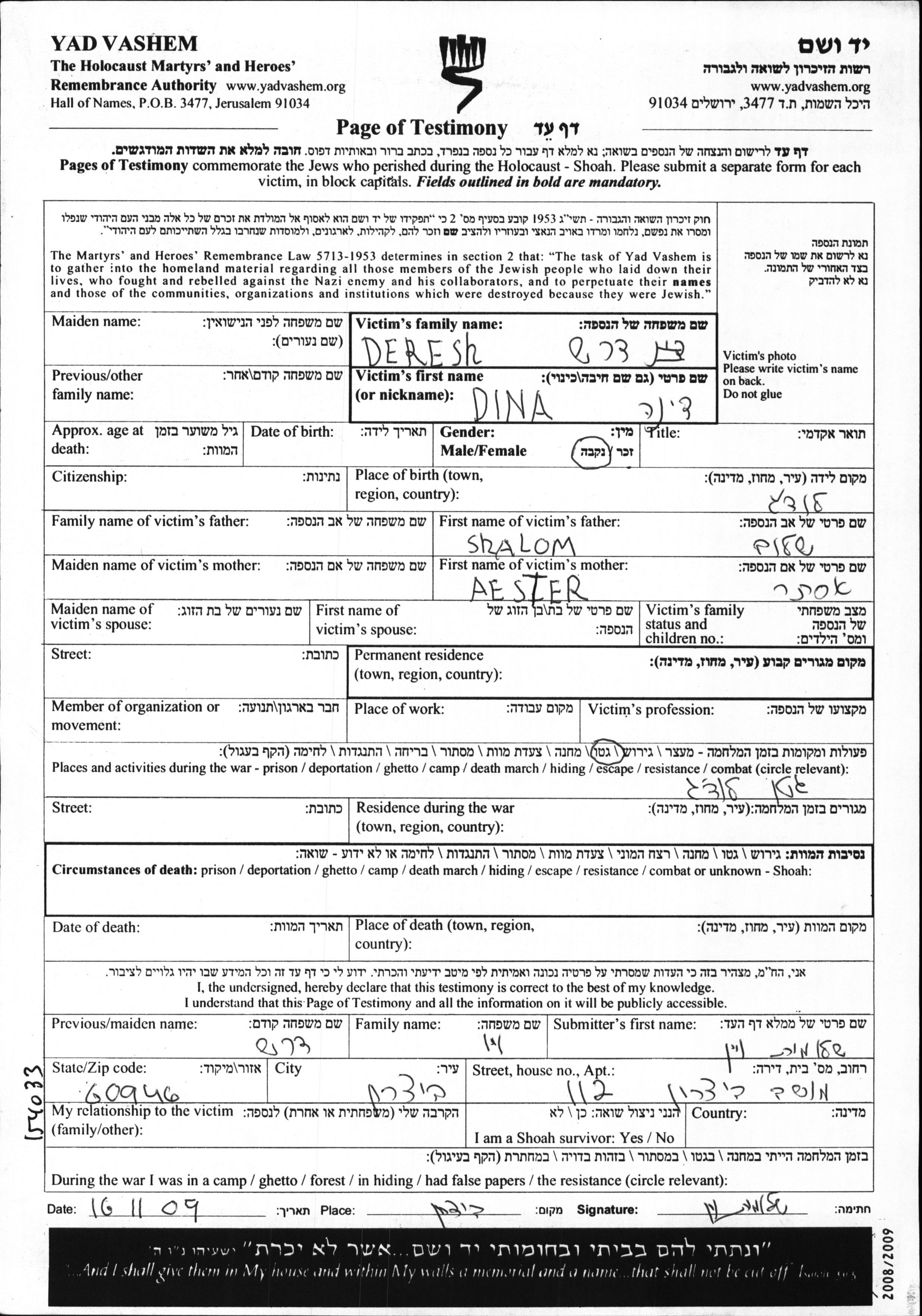 Yad Vashem - Pages of Testimony Names Memorial Collection