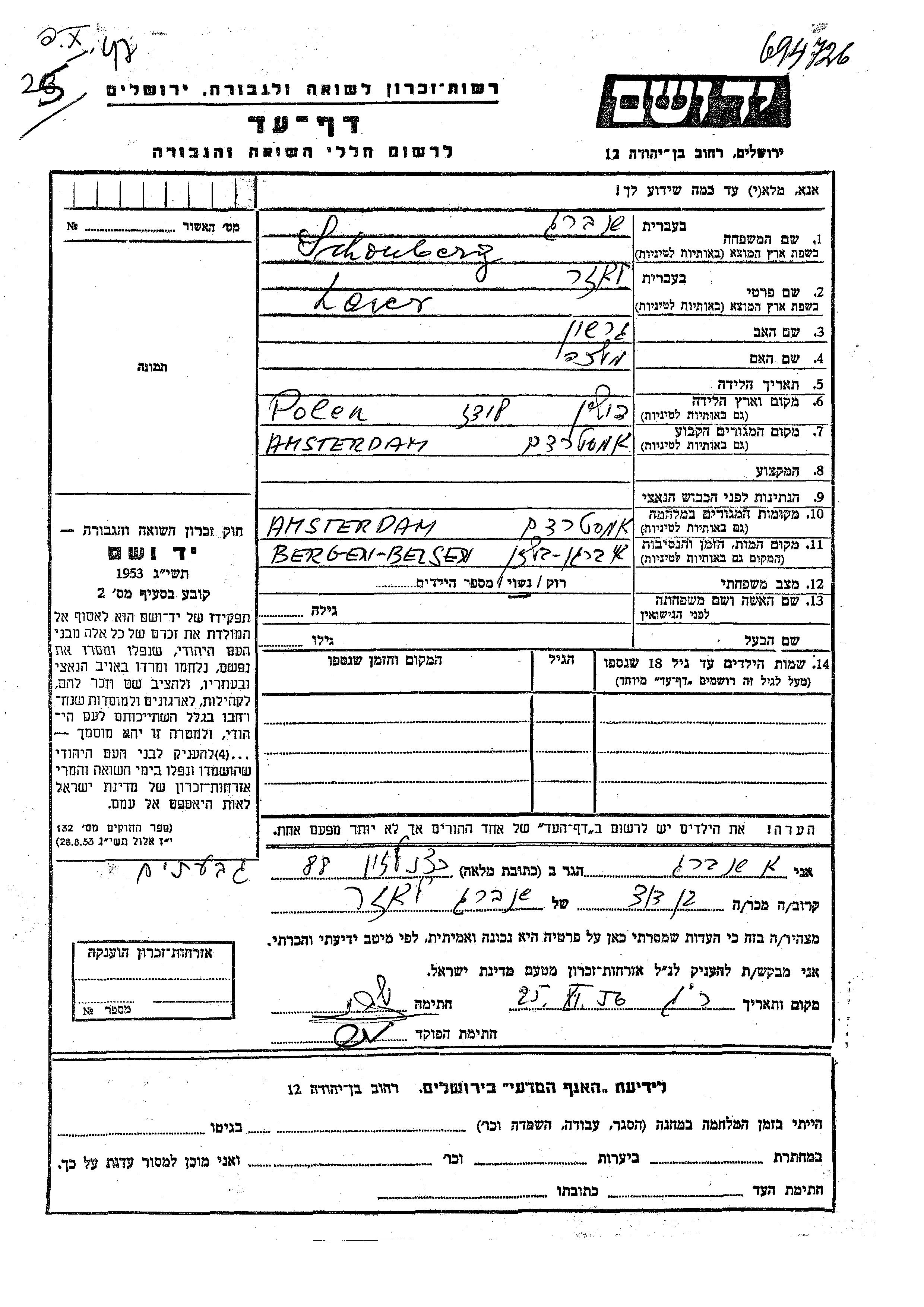 Laicy a été assassiné pendant la Shoah. Lieu de la mort: Bergen Belsen, Allemagne.