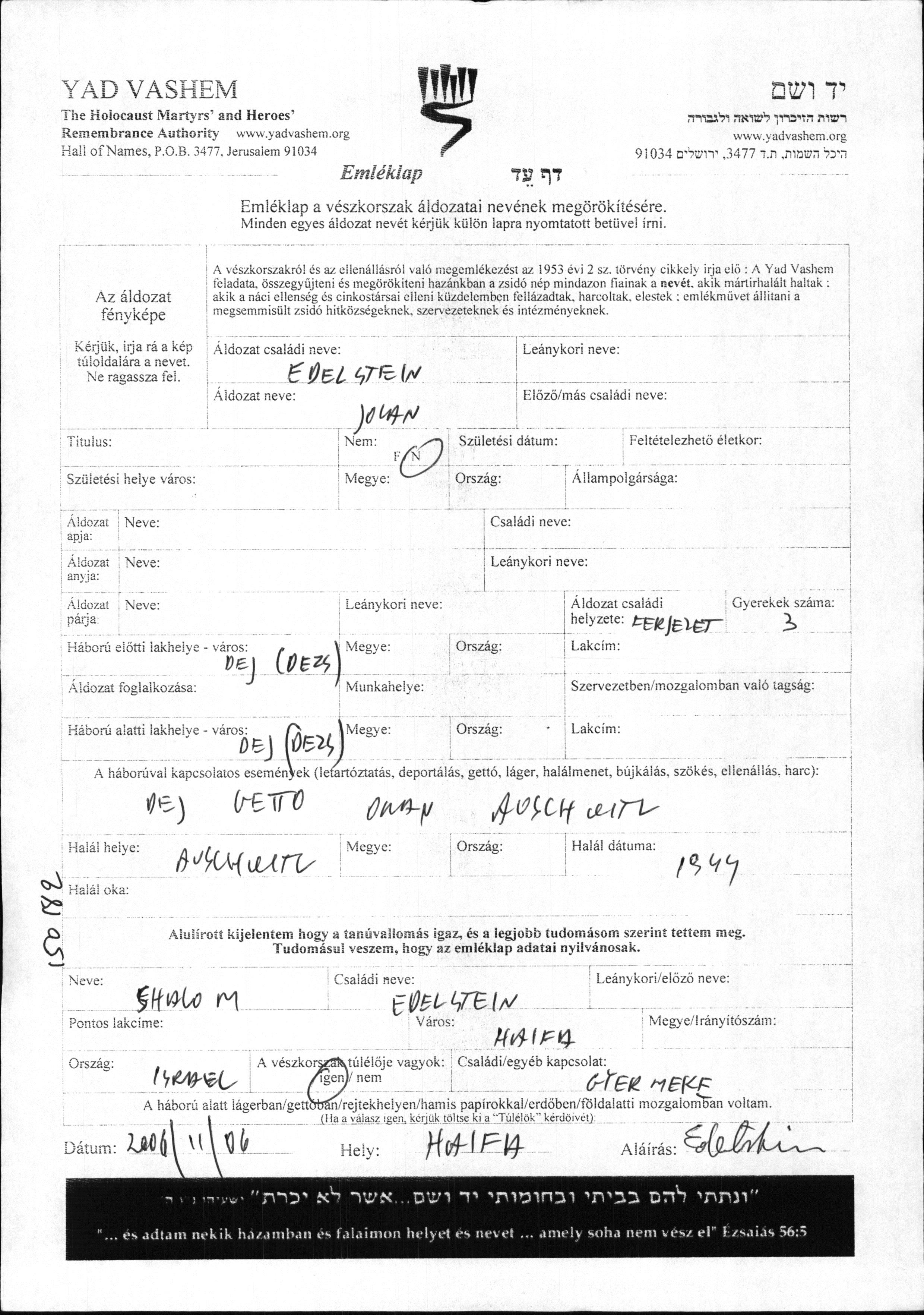 Yad Vashem - Pages of Testimony Names Memorial Collection