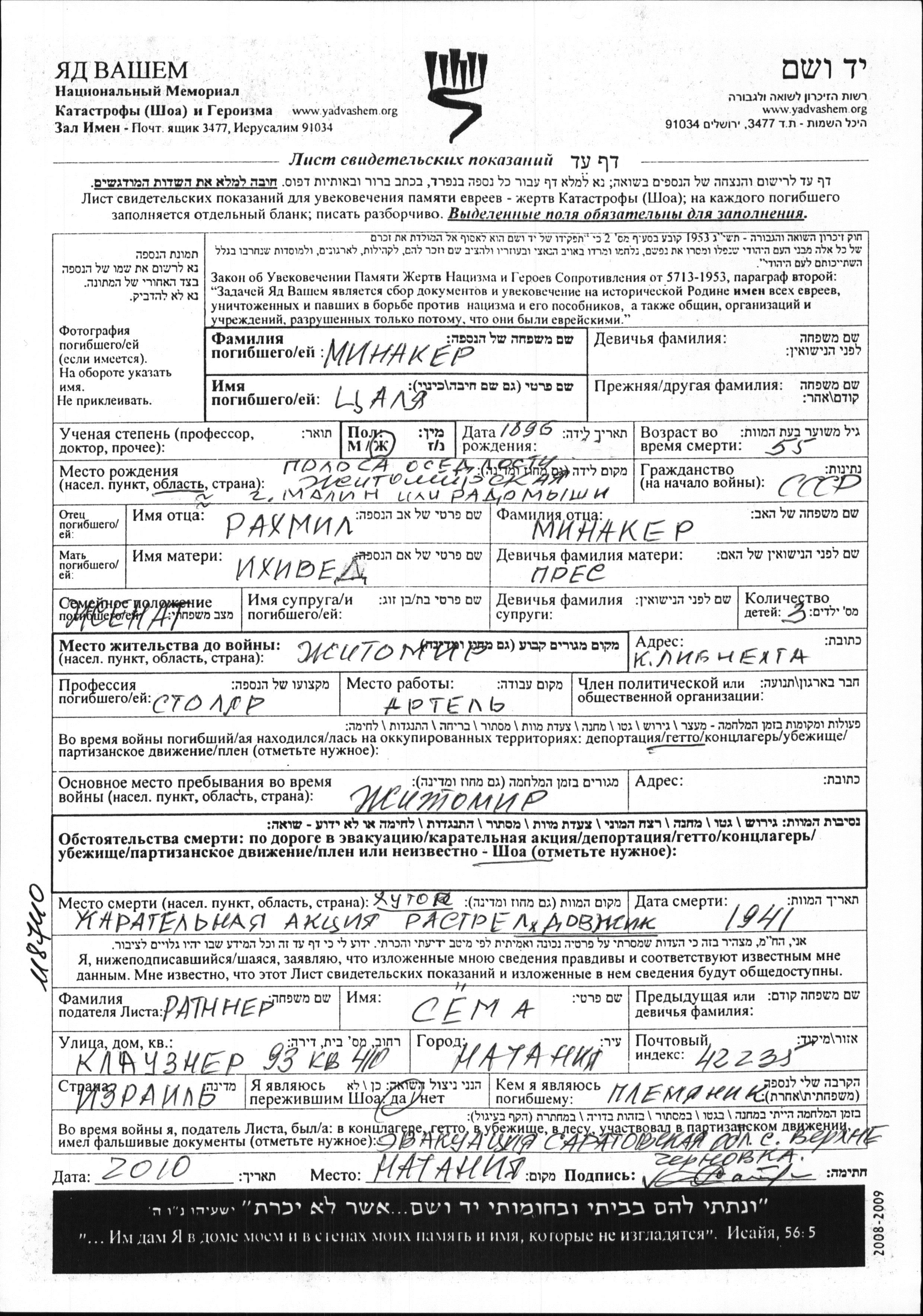 Yad Vashem - Pages of Testimony Names Memorial Collection